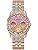 Alcanza el cielo y trasciende el tiempo. Con sus tonos rosas en cascada y tonos dorado rosa en toda la superficie, este reloj multifuncional presenta una esfera brillante, una banda de acero inoxidable y una bisel de cristal.