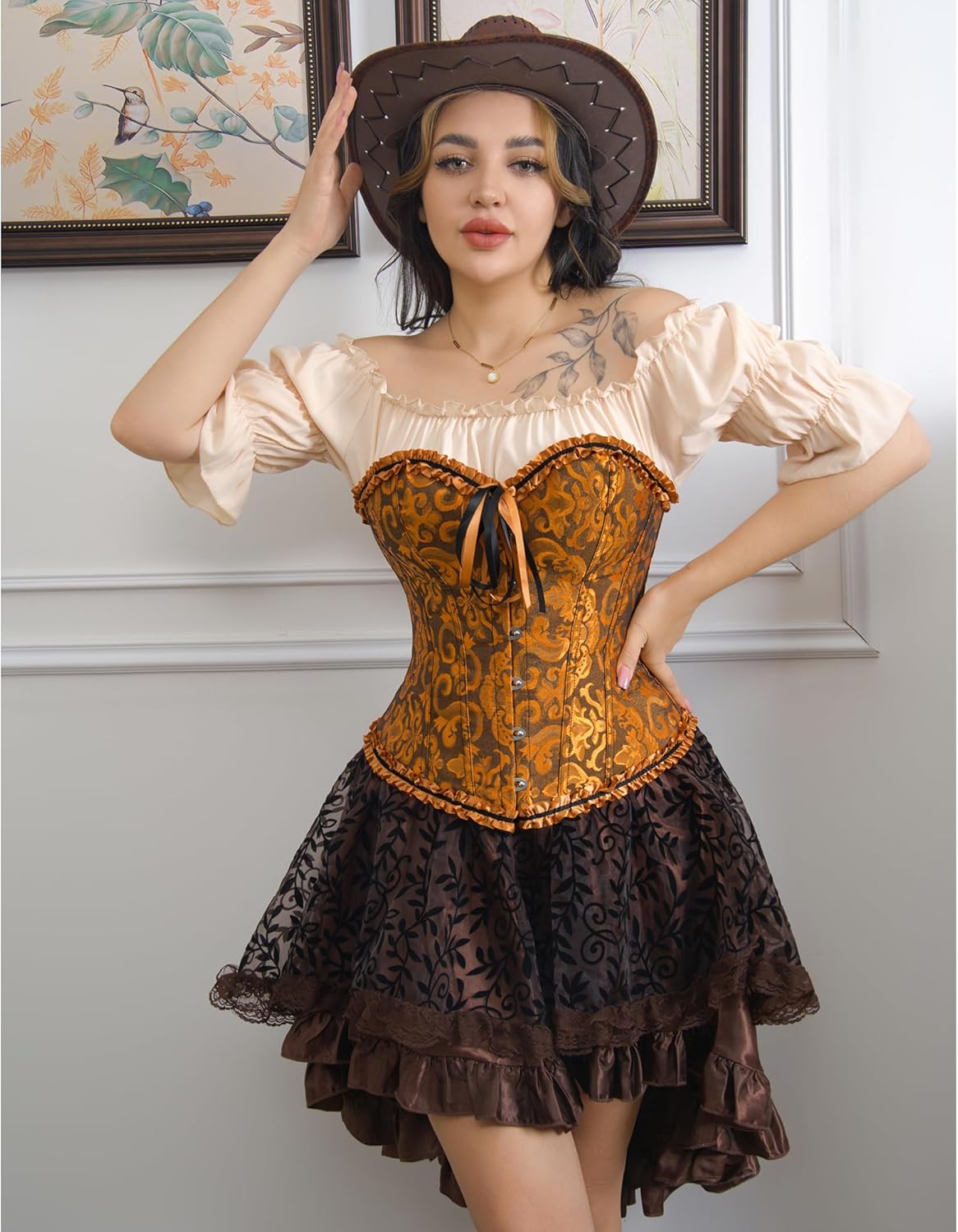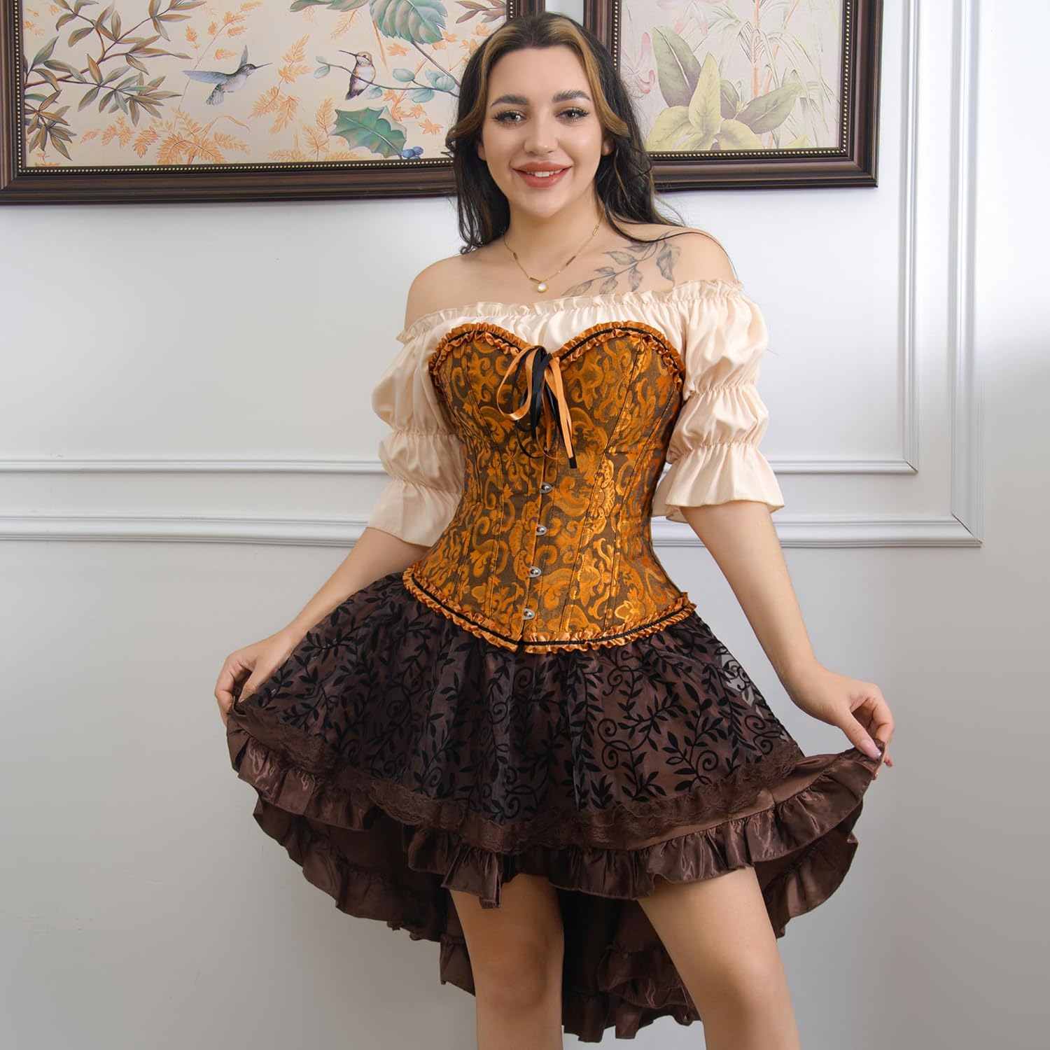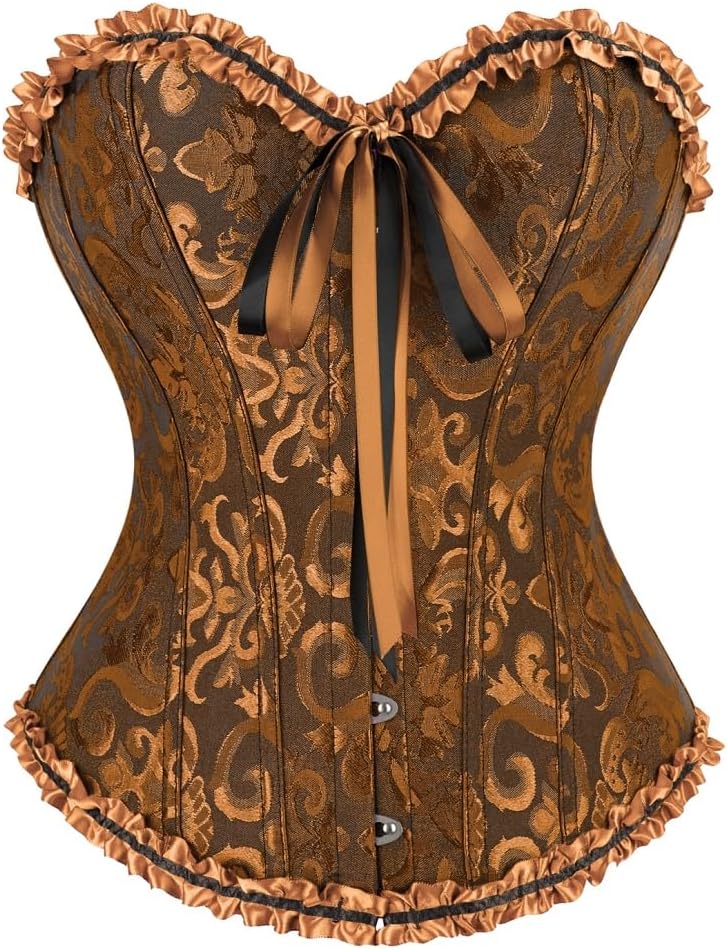 frawirshau Women's Lace Up Boned Overbust Corset Bustier Lingerie Bodyshaper Top