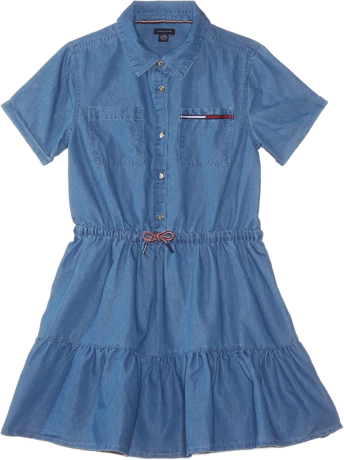 Vestido de mezclilla sin mangas para niña Tommy Hilfiger, con cuello y cintura cintada ligera