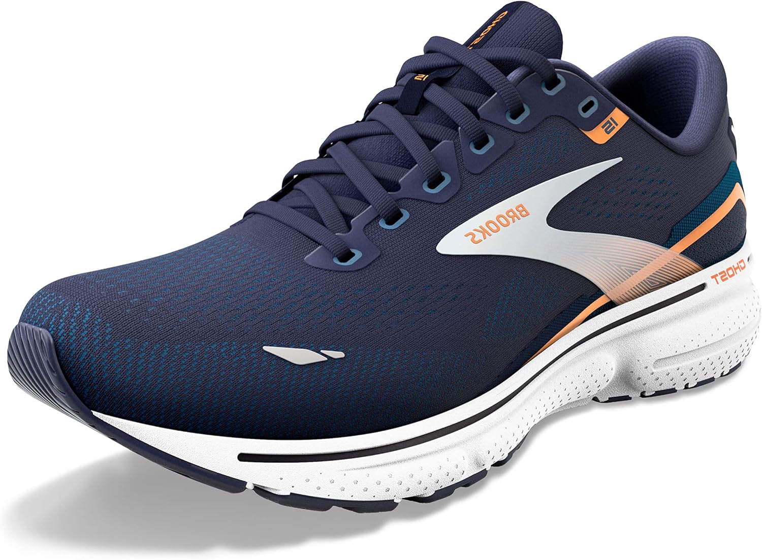 Brooks Mens Ghost 15 Running Shoe - Peacoat/Blue/Orange Pop - 10.0 - 2E