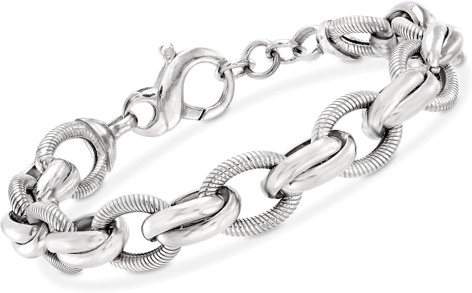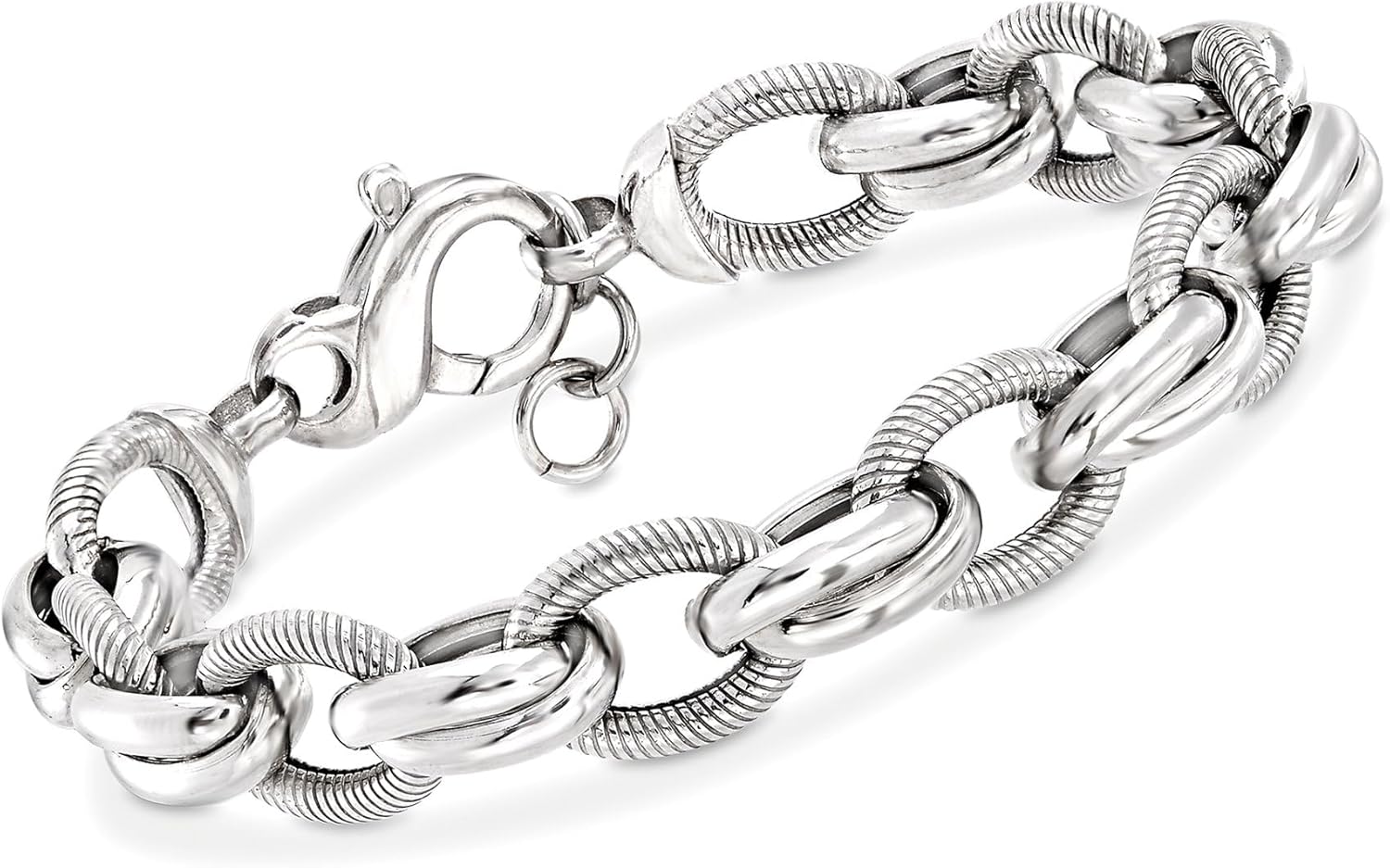 Ross-Simons Italian Sterling Silver Textured and Polished Multi-Link Bracelet