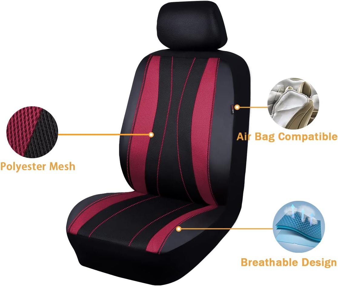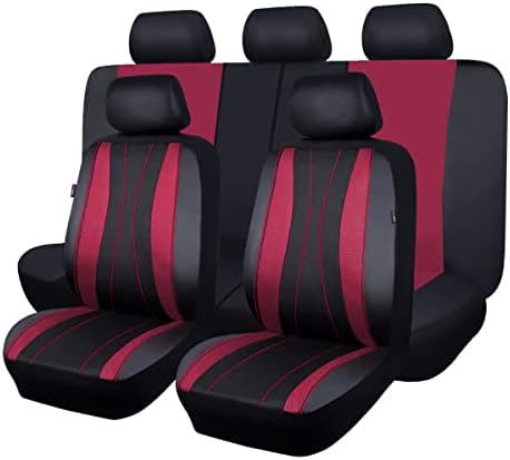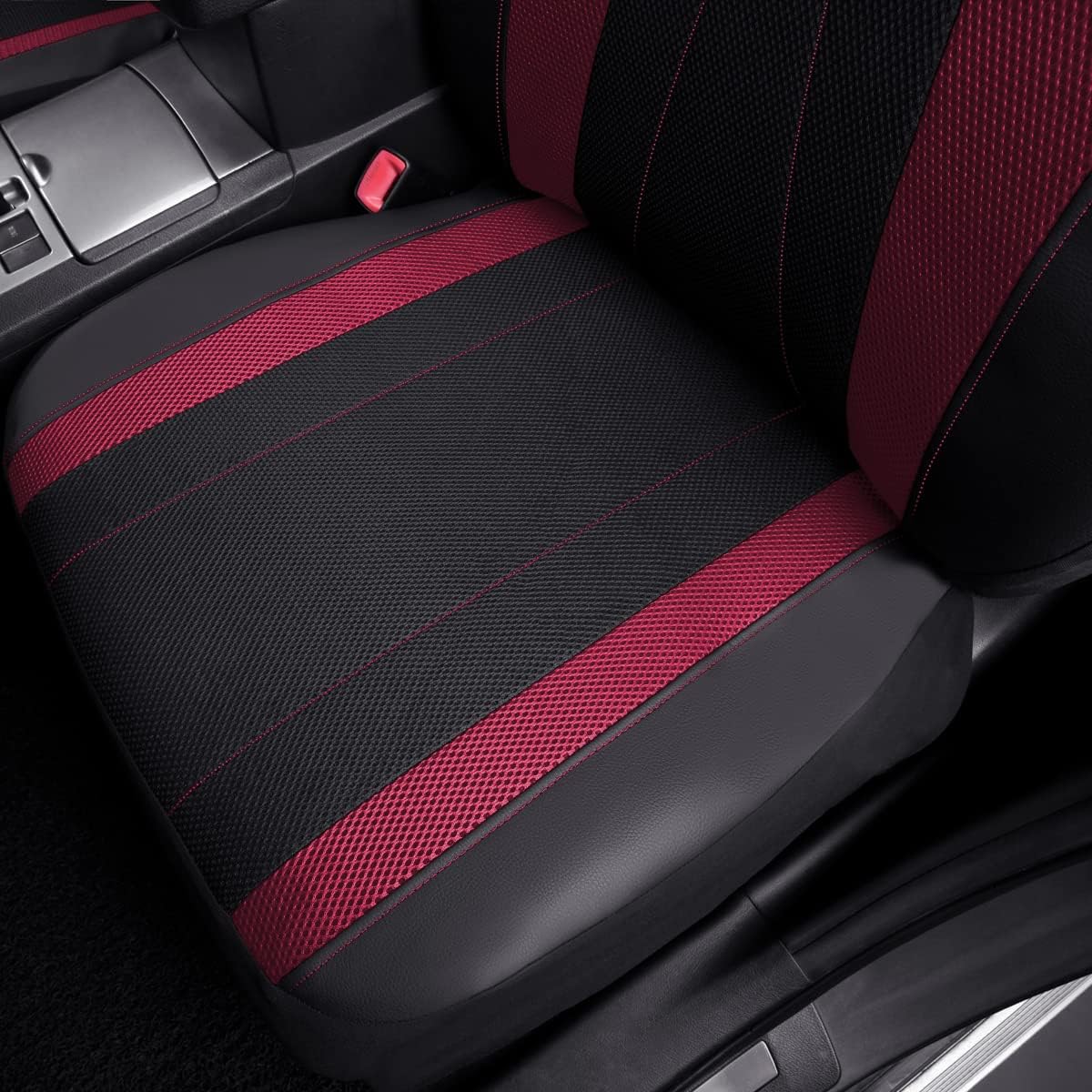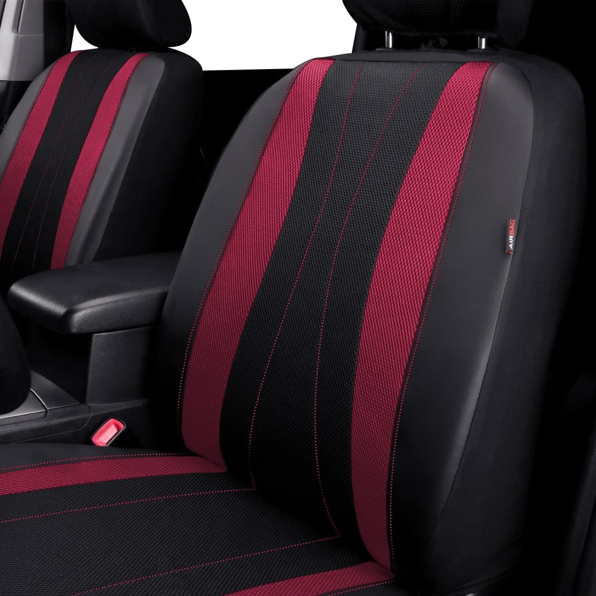 Flying Banner car seat Covers Full Set Faux Leather Air Mesh Breathable Man Lady Airbag Compatible Rear Bench Split 40/60 50/50 60/40 Truck Pick Up (Full Set - Low Back, Black Burgundy)
