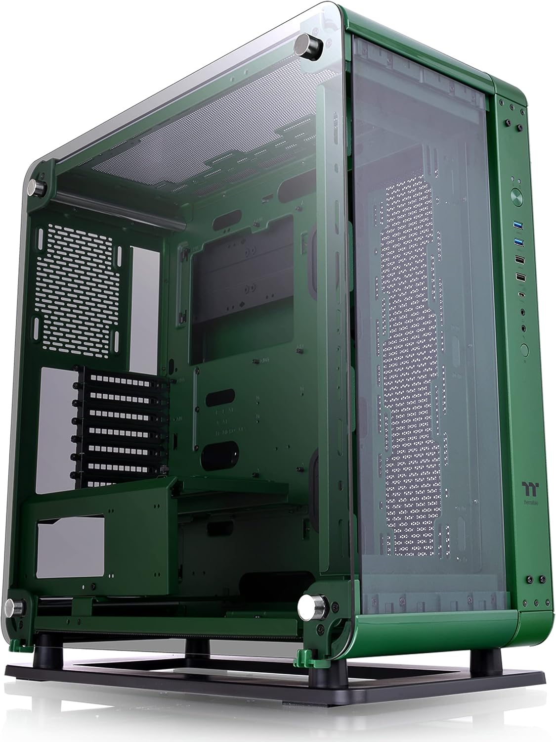 The Core P6 TG Racing Green Mid Tower Case is a special color edition to the Core P6 TG and is a smaller version of the Core P8 TG Full Tower Case. Just like the Core P8 TG, the Core P6 TG Racing Green can be transformed into a closed or open styled form effortlessly and is the newest member of the Thermaltake iconic open-frame Core Series. The Core P6 TG Racing Green features a fully modular design, Rotational PCI-E Slots, a PSU cover, an extra GPU bracket, support for 120mm and 140mm fans, support for 360mm and 280mm radiators, and removable filters.P/N: CA-1V2-00MCWN-00SERIES: CoreMODEL: Core P6 TG Racing GreenCASE TYPE: Mid TowerDIMENSION (H X W X D): 565 x 255 x 530mm (22.2 x 10 x 20.9 inch)NET WEIGHT: 17.84 kg / 39.33 lbs.SIDE PANEL: 4mm Tempered Glass x 3COLOR: Racing GreenMATERIAL: SPCCCOOLING SYSTEM:DRIVE BAYS: ACCESSIBLE, HIDDEN, 4 x 3.5” or 8 x 2.5”EXPANSION SLOTS: 7 (Rotatable Patented Design)MOTHERBOARDS: 6.7” x 6.7” (Mini ITX), 9.6” x 9.6” (Micro ATX), 12” x 9.6” (ATX), 12” x 10.5”(CEB)I/O PORT: USB 3.2 (Gen 2) Type-C x 1, USB 3.0 x 2, USB 2.0 x 2, HD Audio x 1PSU: Standard PS2 PSU (optional)FAN SUPPORT: Front: 3 x 120mm, 2 x 120mm, 1 x 120mm, 2 x 140mm, 1 x 140mm Top: 3 x 120mm, 2 x 120mm, 1 x 120mm, 2 x 140mm, 1 x 140mm Rear: 1 x 120mm Right (M/B Side): 3 x 120mm, 2 x 120mm, 1 x 120mm, 2 x 140mm, 1 x 140mm Bottom: 3 x 120mm, 2 x 120mm or 1 x 120mm, 2 x 140mm, 1 x 140mmRADIATOR SUPPORT: Front: 1 x 360mm, 1 x 240mm, 1 x 120mm, 1 x 280mm, 1 x 140mm Top: 1 x 360mm, 1 x 240mm, 1 x 120mm, 1 x 280mm, 1 x 140mm Rear: 1 x 120mm Right (M/B Side): 1 x 360mm, 1 x 240mm, 1 x 120mm, 1 x 280mm, 1 x 140mm Bottom: 1 x 240mm, 1 x 120mmCLEARANCE: CPU cooler height limitation: 180mm, VGA length limitation: 300mm (With Reservoir), 400mm (Without Reservoir), 430mm (With Radiator), 458mm (Without Radiator) PSU length limitation: 200mm.