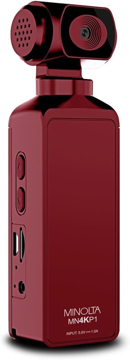 Minolta 4K Ultra HD Pocket Camcorder – WiFi Enabled Action Camera with 16MP Photos, 170° Wide Angle Lens, 270° Rotating Head, Slow Motion, 1.3-inch Display - 16GB Card & Waterproof Case (Red)