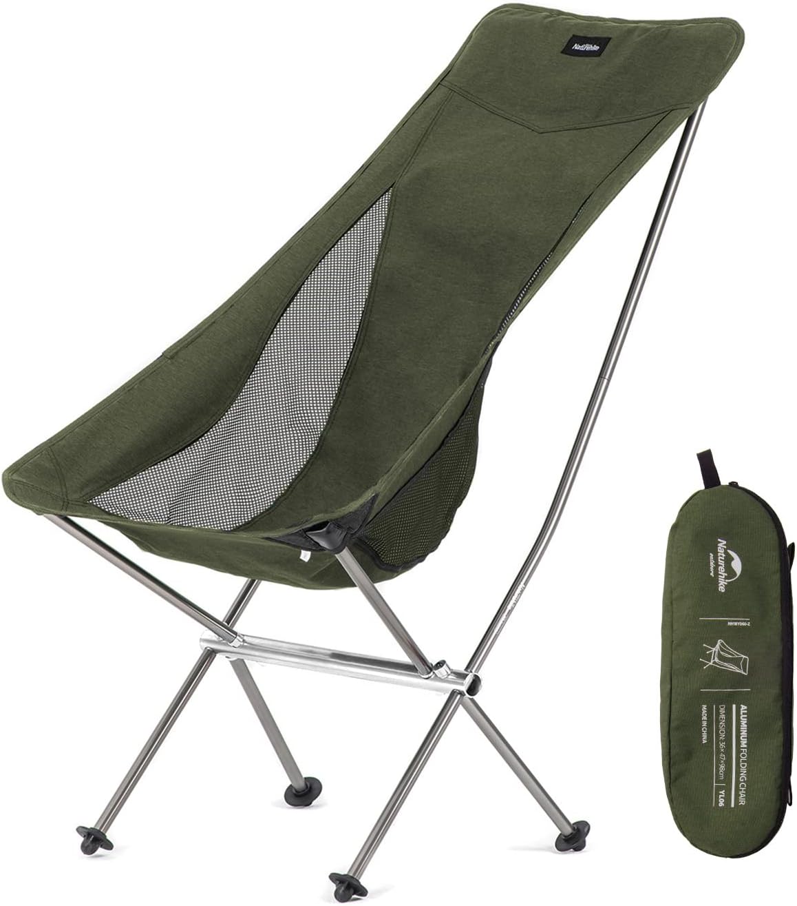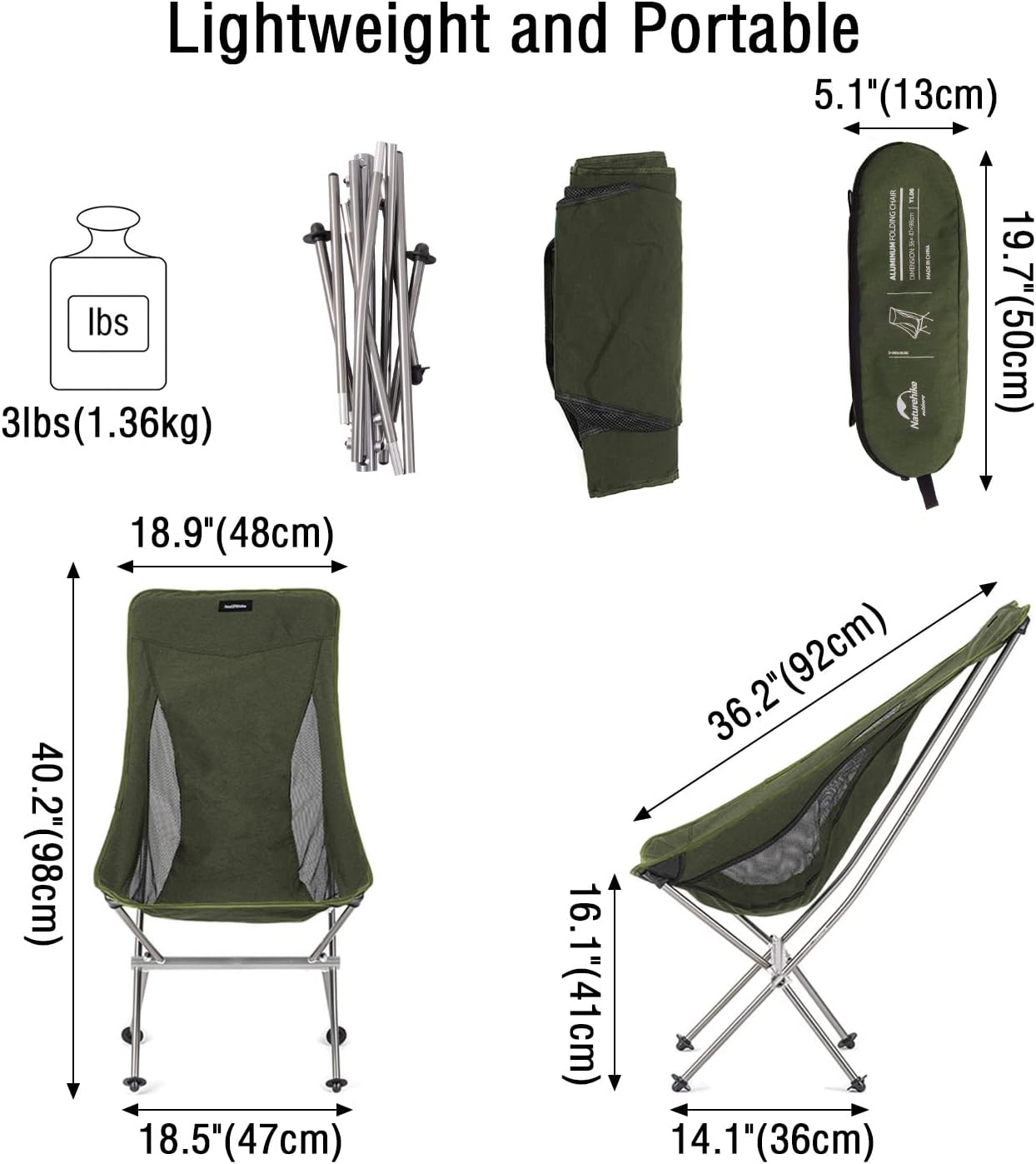 Naturehike Folding Camping Chair, Lightweight High Back Portable Compact Chair, Large Heavy Duty 330lbs for Adults, Hiking Camp Backpacking Festival Travel Beach Picnic Fishing with Storage Bag, Green
