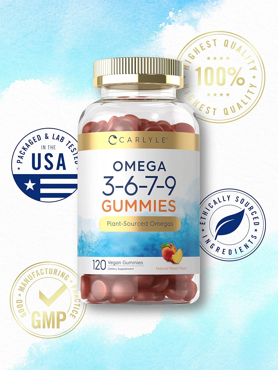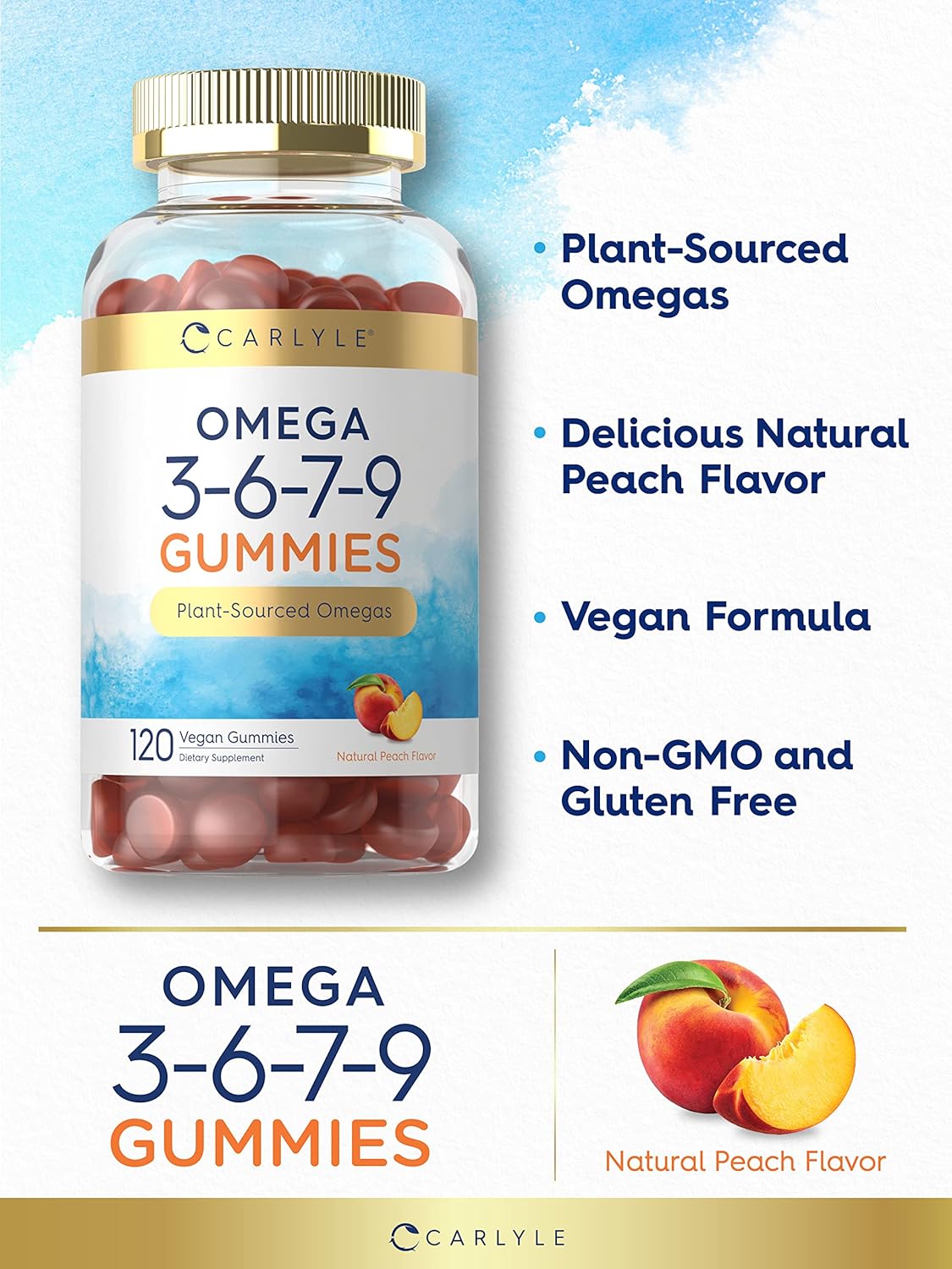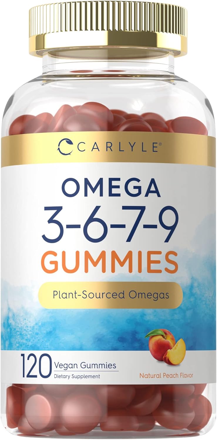 GOMITAS OMEGA: Deliciosas gomitas de sabor durazno son una excelente fuente de Omegas 3-6-7-9 ¡FÓRMULA VEGANA: Complejo Omega de Base Vegetal con Lino Orgánico y Aceite de Espino Amarillo! ENRAIZADAS EN EL BIENESTAR: Carlyle proporciona suplementos premium y honestos en tu búsqueda de una vida saludable CARLYLE MANUFACTURERS: Ingredientes probados en laboratorio, de confianza, calidad superior, ¡100% garantizado!