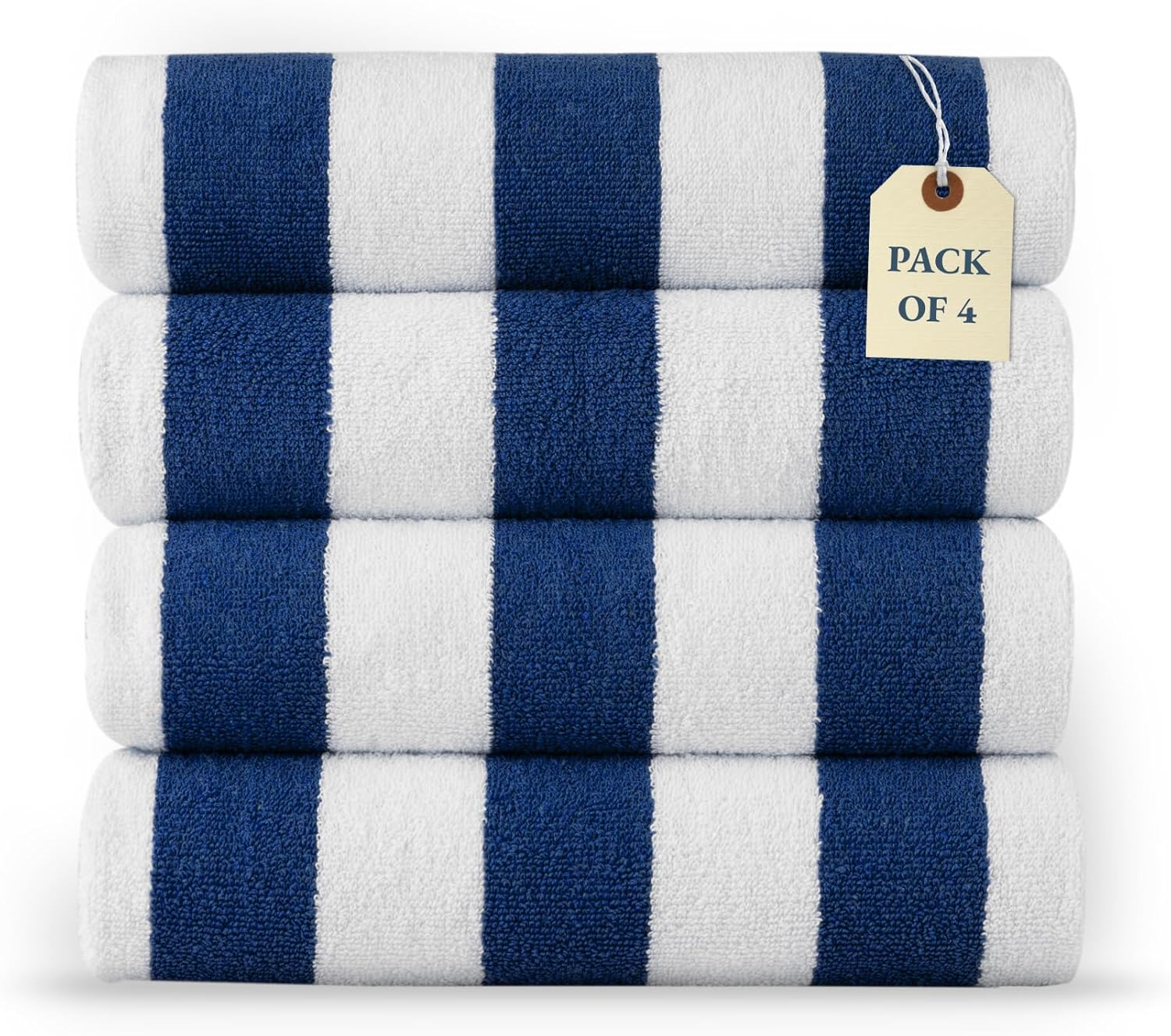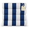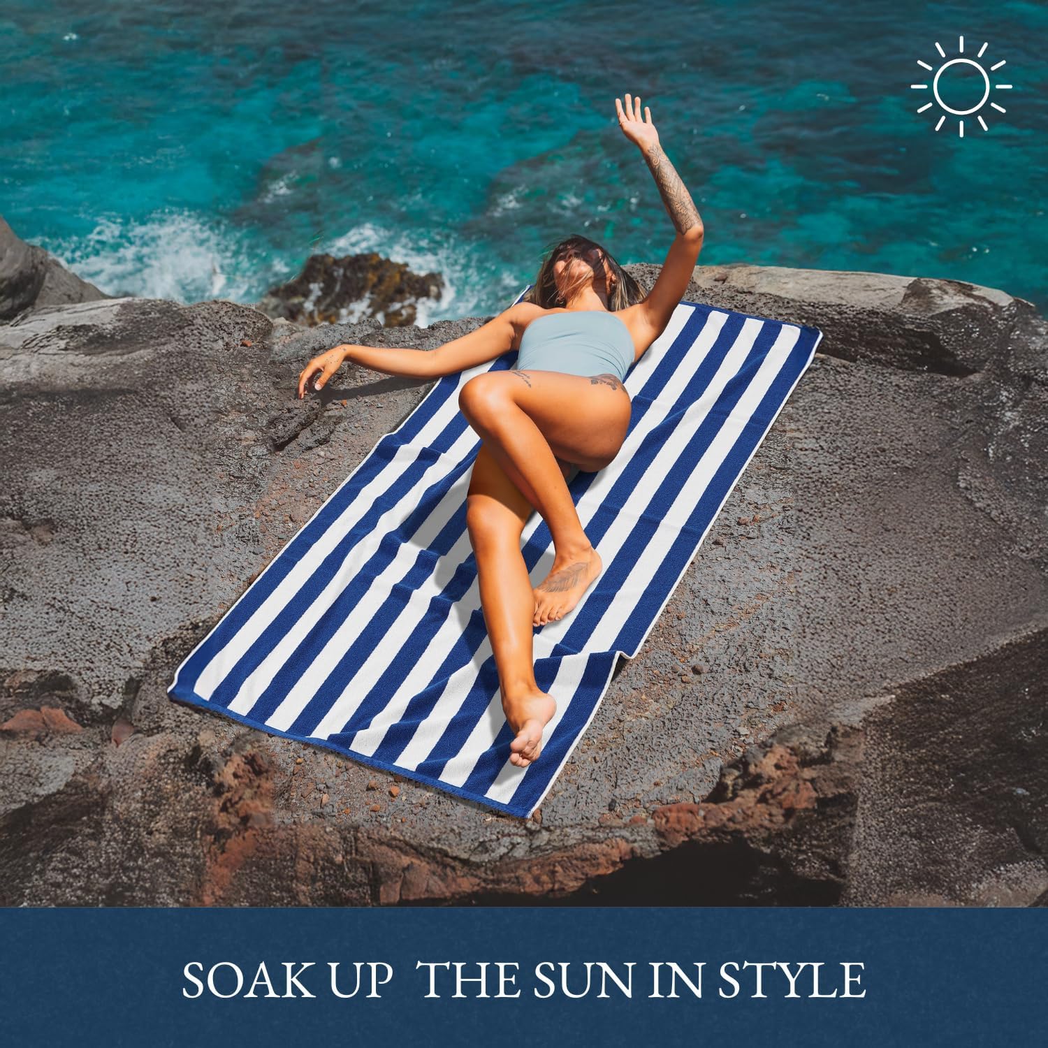 LANE LINEN Beach Towel 4 Pack - Beach Towels Oversized, Cabana Stripe Quick Dry Pool Towels, Beach Essentials for Women, Soft & Absorbent Oversized Beach Towel (36" x 72”) - Blue
