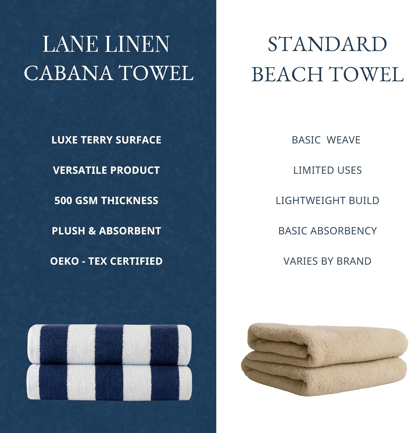 Looking for the perfect beach towel? Lane Linen 100% Cotton oversized beach towels offers optimal coverage for maximum comfort, extremely absorbent and fluffy, making them perfect for lounging by the pool or enjoying a day at the beach. So what are you waiting for? Get ready to relax in style!
