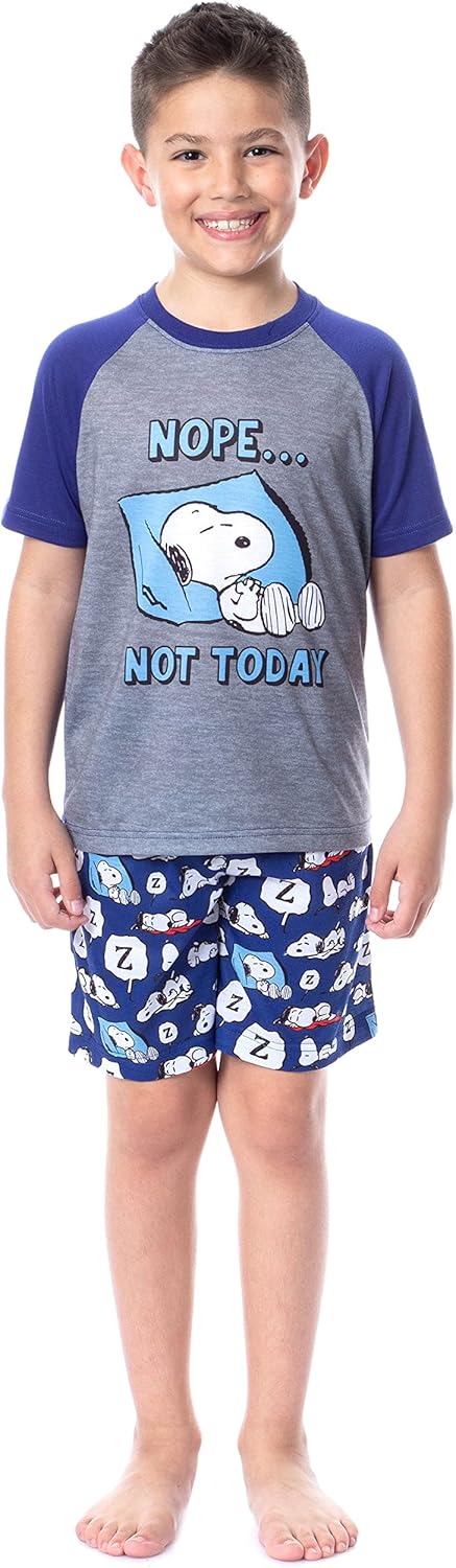 Intimo Peanuts Boy's Snoopy Nope Not Today Sleep Pajama Set Short Crewneck