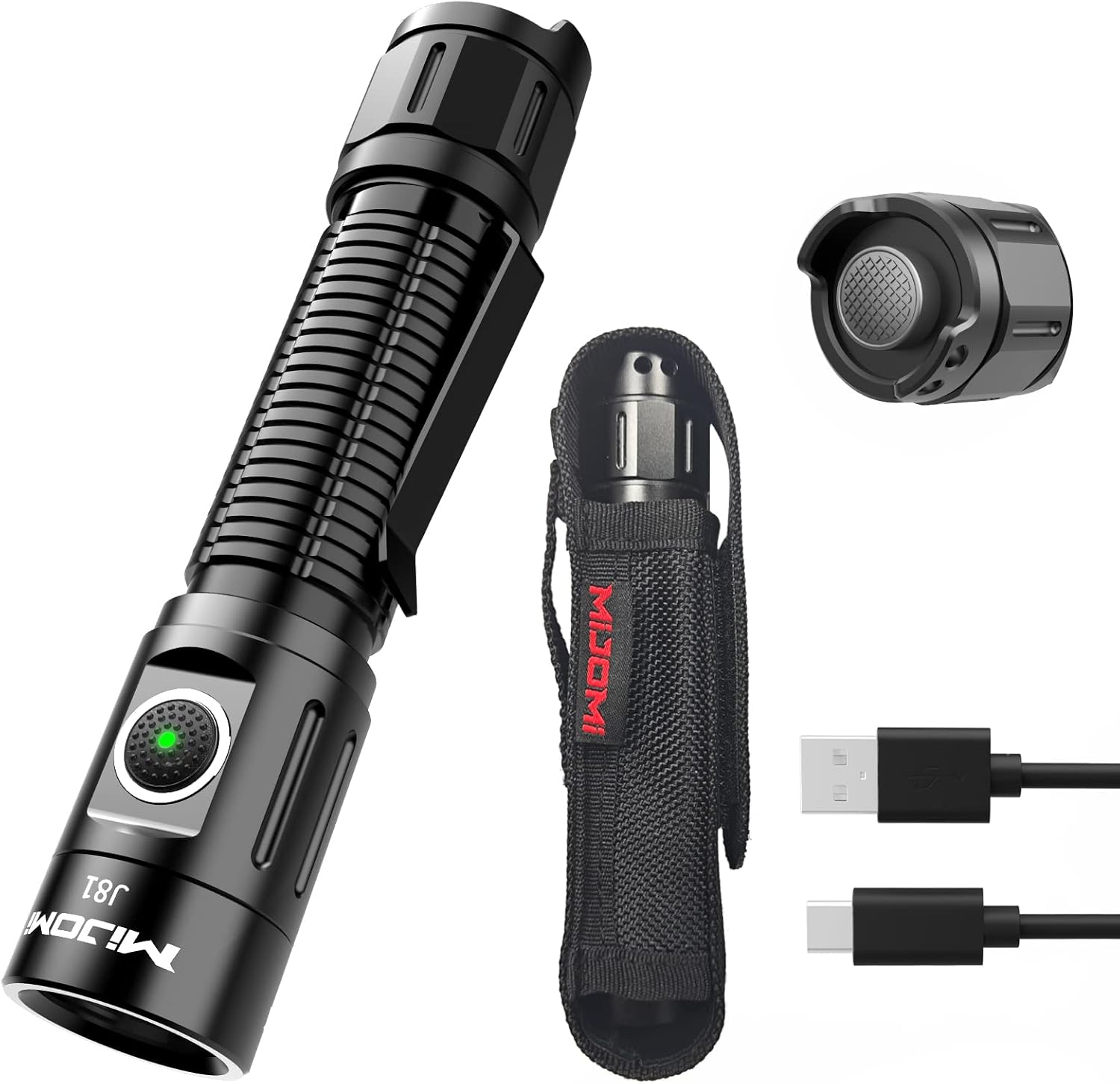 J81 Tactical Rechargeable Flashlight with Holster, 1300 Lumen Super Bright IP68 Waterproof Dual Button Flashlight for Tactical Games Outdoor