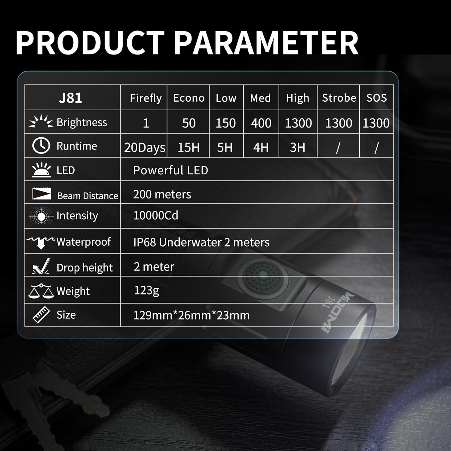 Waterproof and shockproof: This flashlight is designed to withstand harsh outdoor environments; It is waterproof with an IPX8 rating, meaning it can be submerged in water up to 2 meters deep for 30 minutes without damage; Tempered glass resist breaking and scratching upon impact, 2m drop test