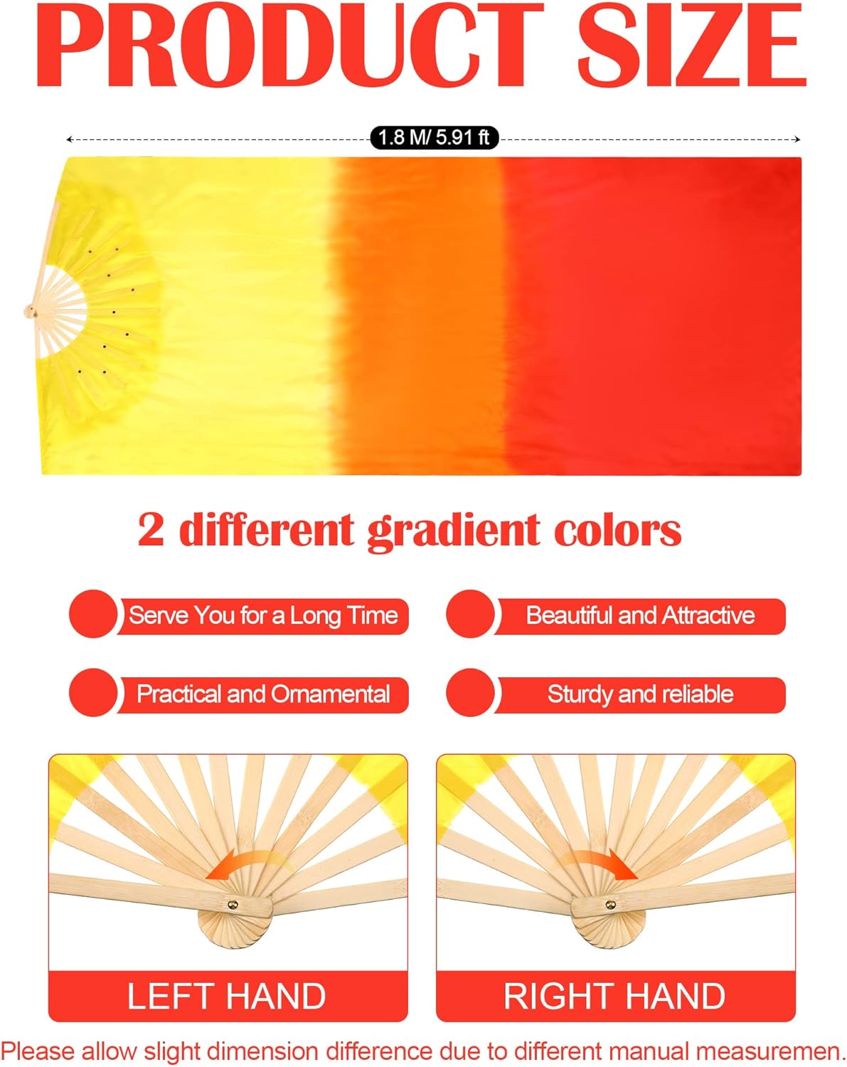 Long Enough for Your Dance: these fans for dance are about 1.8 m/ 5.91 ft in length, a proper size for your dancing, allowing you to wave your fans as well as you can, making you enjoy the fun of dancing, suitable for belly dance, ethnic dance, modern dance, Chinese Yangko, stage performances, school activities and more