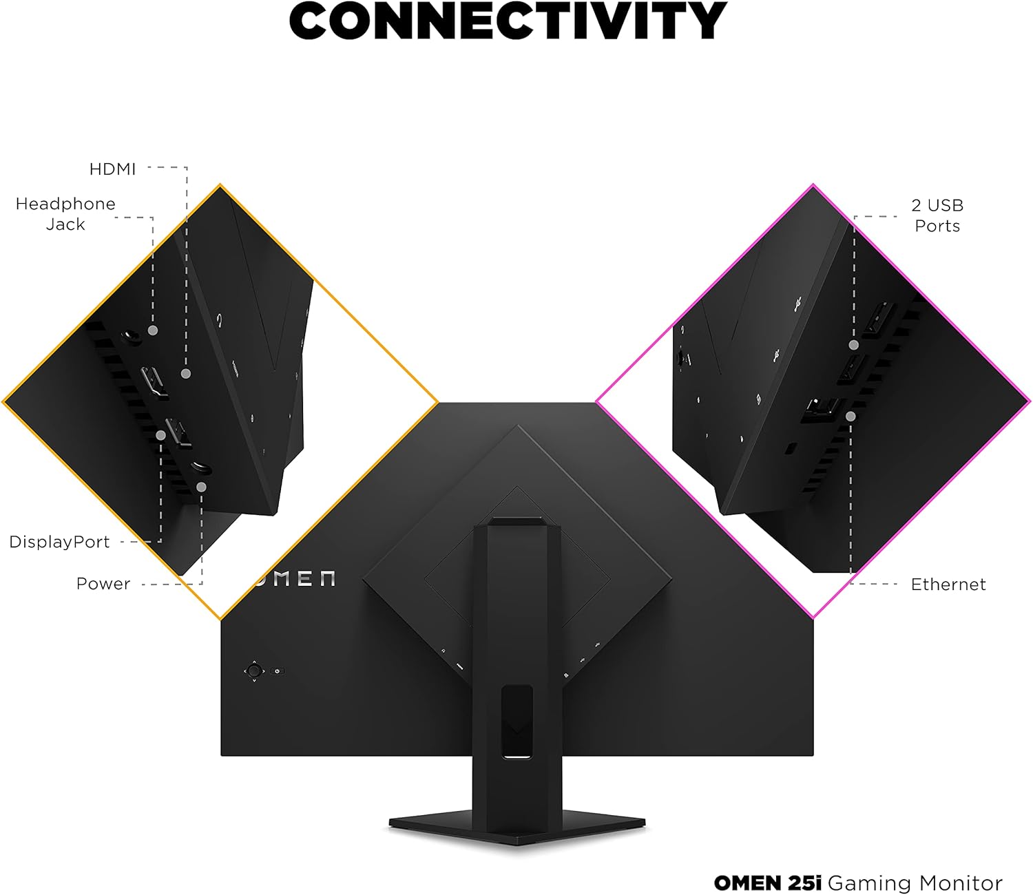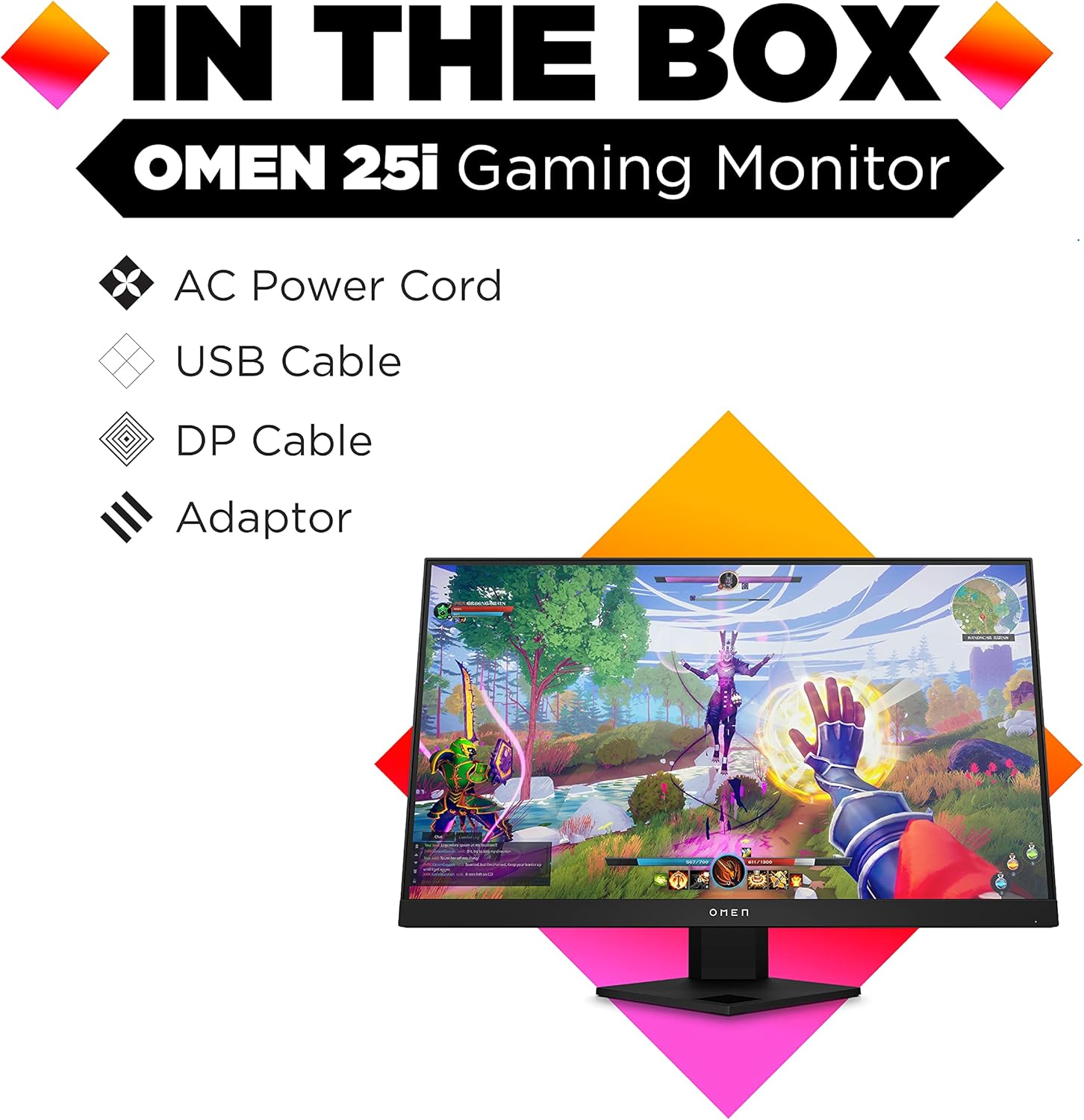 OMEN 25i Gaming Monitor, 1080p IPS FHD Display 165Hz with 1ms VESA HDR 400, NVIDIA G-SYNC Compatible, AMD FreeSync Premium Pro, VESA Mounting, Console Compatible, Eyesafe Screen (Renewed), Black