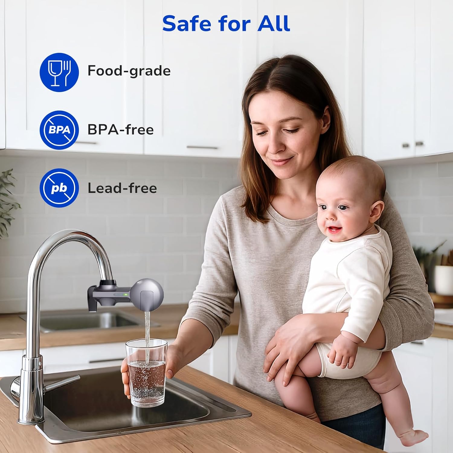Filtración Poderosa: Sistema de carbón activado y intercambio de iones certificado por NSF reduce el 99% de plomo, cloro, óxido, sedimentos, etc. (más de 70 impurezas), mejorando enormemente el sabor y el olor