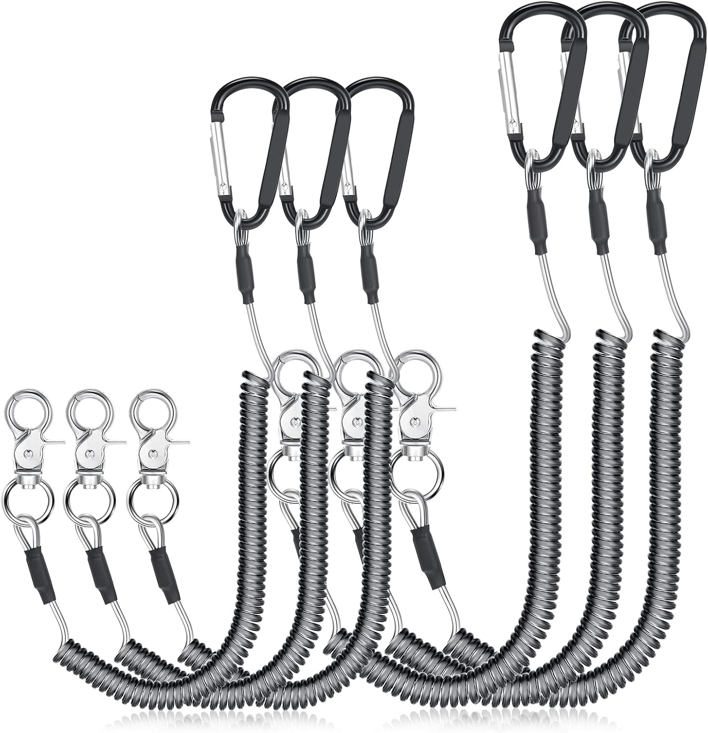 6 Pack Heavy Duty Fishing Lanyard Steel Wire Coiled Lanyard Kayak Retractable Tool Leash Fishing Rod Safety Lanyard Gear Lanyard with Alloy Clips for Pliers Boating