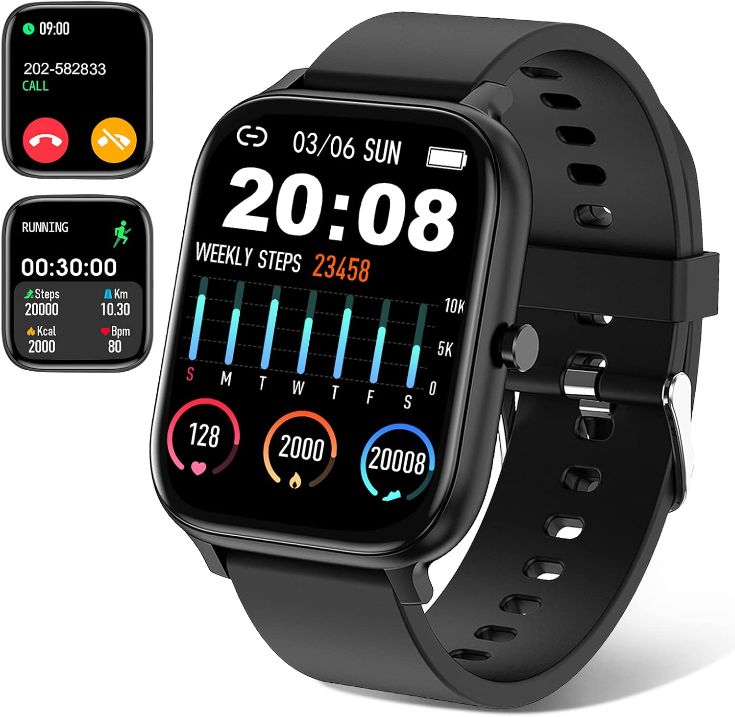 PANTALLA TÁCTIL DE 1.69'' DE ALTO RESOLUCIÓN EN COLOR: La pantalla de gran tamaño facilita su operación, resolución HD de 240 x 280, los colores son más brillantes y las imágenes más nítidas. El alojamiento de aleación metálica y el peso de 40g lo hacen fácil de usar, y la correa de silicona cómoda puede ser usada con mayor comodidad. Puede elegir entre más de 100 diales personalizados fijos o configurar su foto favorita del teléfono como cara del reloj.