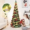Decoway Pre Lit Pre Decorated Christmas Tree Pop Up Christmas Tree and Warm White LED Lights,Holiday Party Decorations,Red Gold (Yellow, 6 FT)