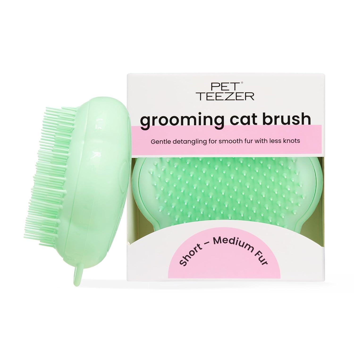 Pet Teezer by Tangle Teezer Cat Brush, De-Shedding Cat Hair Brush for a Gentle, Soothing Groom & Short to Medium Length Fur, Green