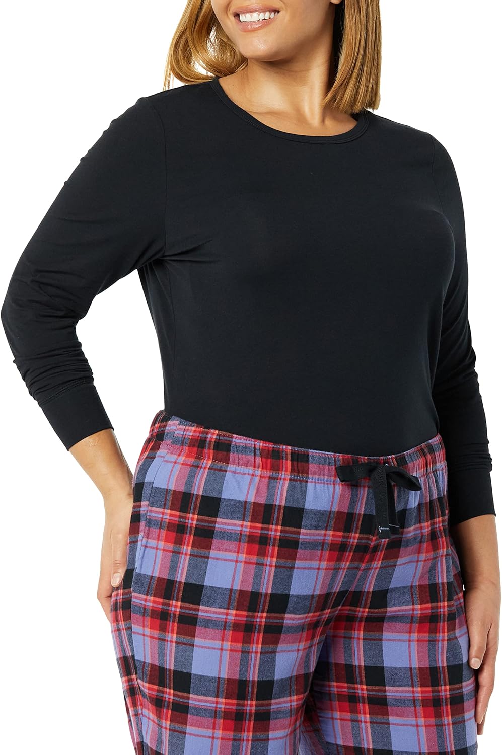 Amazon Essentials Women's Lightweight Flannel Pant and Long-Sleeve T-Shirt Sleep Set