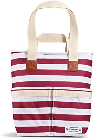 Fit & Fresh Foundry Wine Carrier Bag & Soft Cooler Bag Insulated Leak Proof, Large Soft Sided Cooler Bag, 6 Bottle Wine Bag With Removable Divider For Beach, Picnics, and Travel, Merlot Stripe
