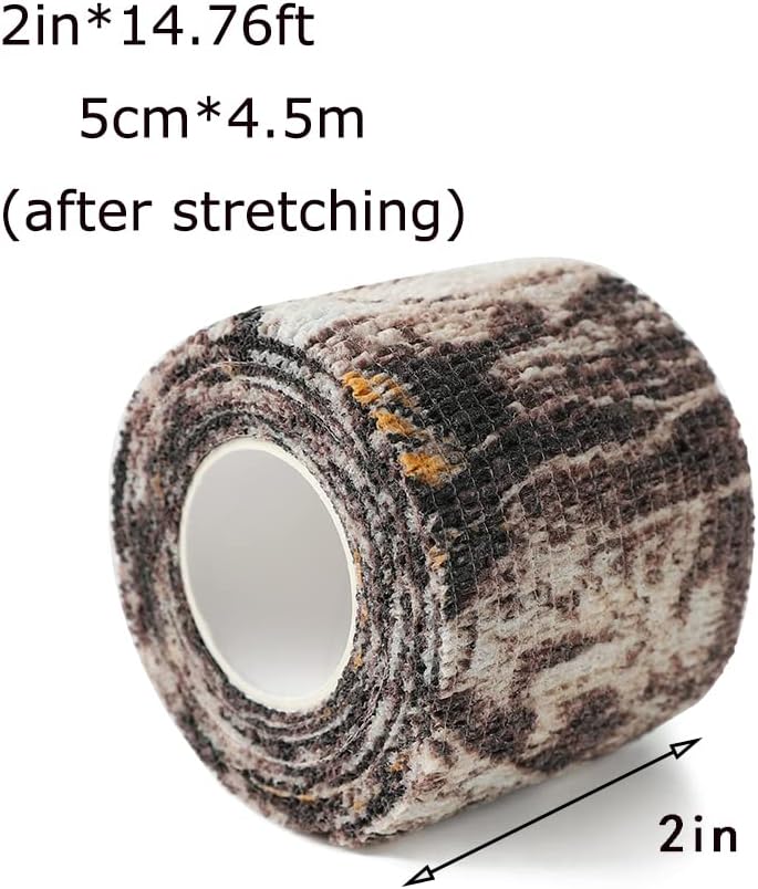 【FÁCIL DE QUITAR】La cinta de camuflaje altamente elástica se volverá muy fuerte después de envolverla, pero no dejará ningún pegamento ni otras sustancias pegajosas después de quitarla.