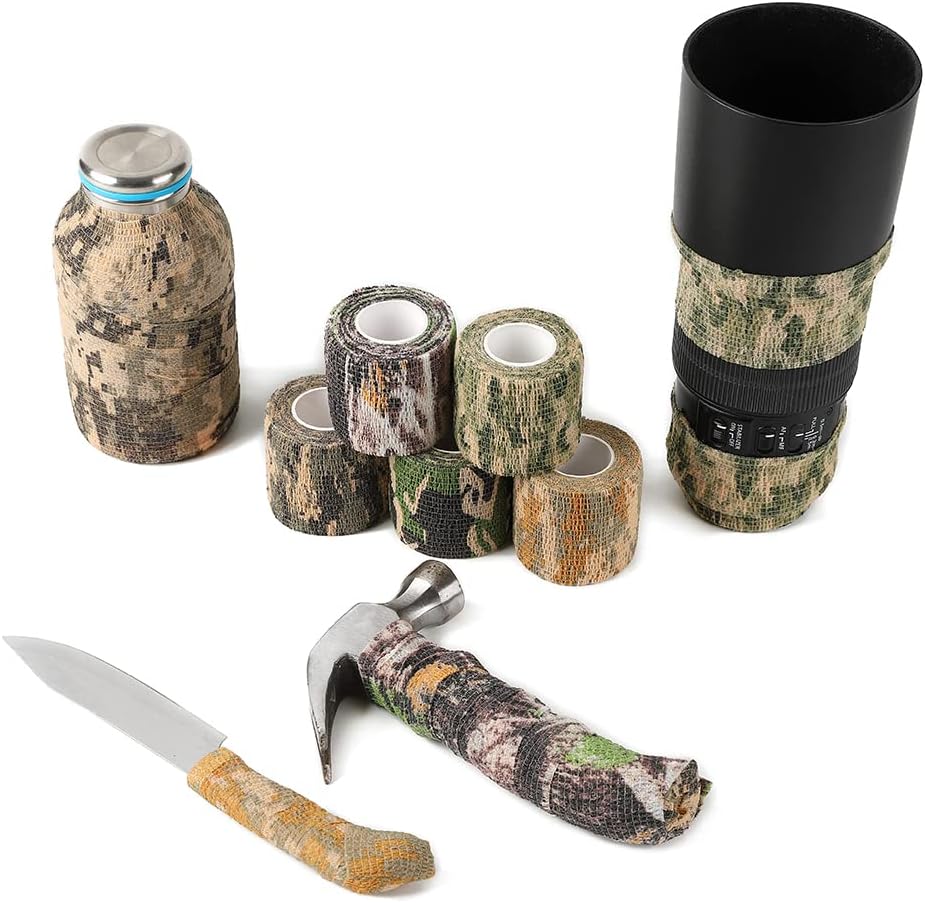 12 rollos de cinta de camuflaje Yoo & Main, autoadhesiva, cohesiva, para rifle, escopeta, camuflaje militar, para acampar, cazar, linterna, bicicleta, fotografía al aire libre