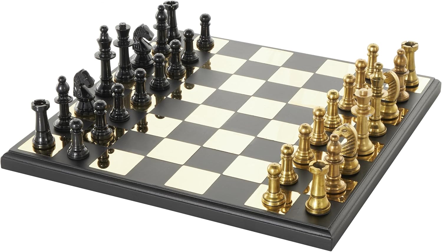 Juego de Ajedrez de Metal y Aluminio Deco 79, 17" x 17" x 5", Oro