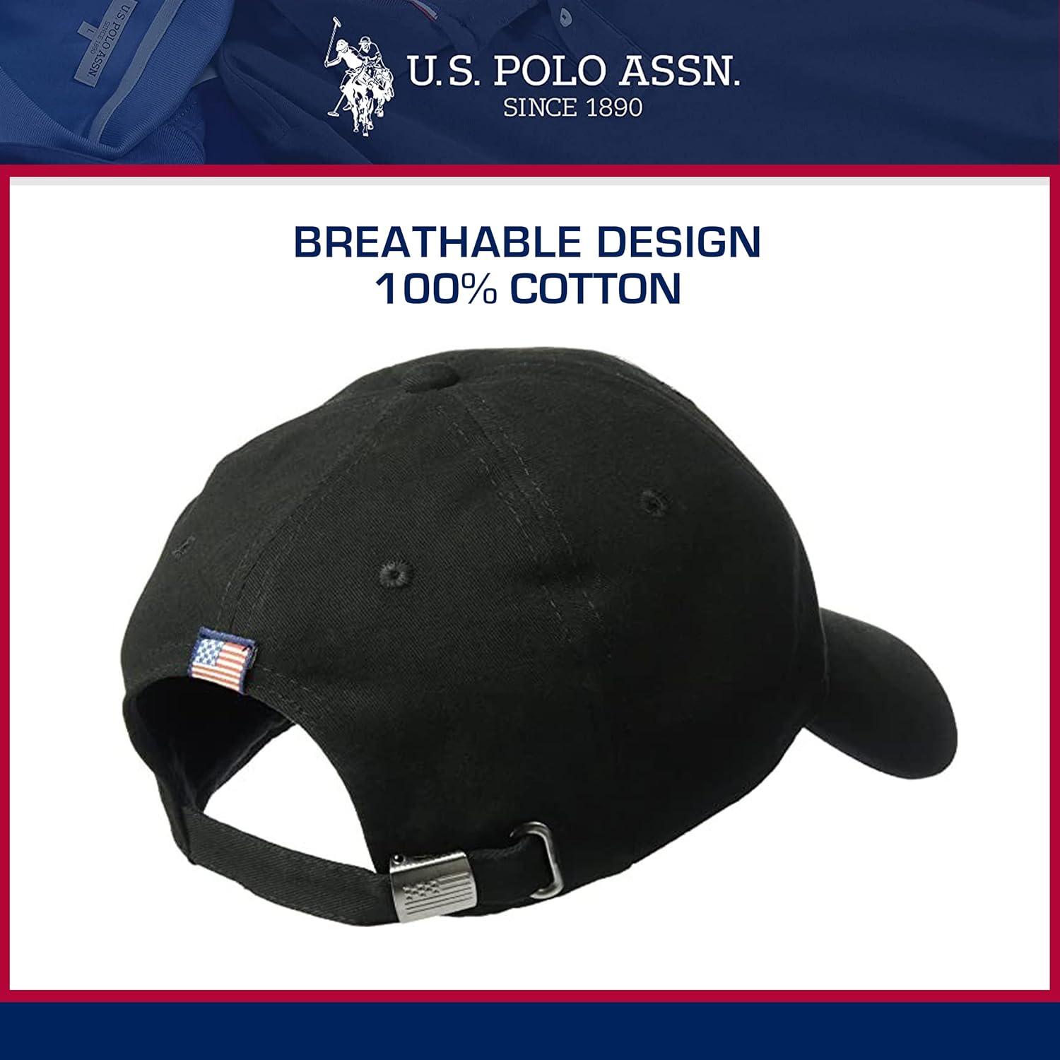 Manténgase abrigado y cómodo mientras practica deportes o disfruta del aire libre con este sombrero de béisbol ajustable suave y flexible de U.S Polo Association. Compuesto de un tejido de algodón ligero y duradero, este sombrero para papá permite una comodidad instantánea al usarlo y cuenta con un cierre de hebilla plateado ajustable con el sello de la bandera de EE. UU. para permitir un fácil ajuste en cabezas de todas las formas y tamaños para un ajuste cómodo. Este elegante sombrero de béisbol presenta un "3" cosido en los lados, un colorido logo de caballo de polo en el frente y elegantes rayas diagonales para dar al sombrero de béisbol de verano un aspecto estilizado. Este suave sombrero cuenta con una visera curva para mantener los rayos UV del sol fuera de sus ojos, y es un producto oficialmente licenciado de U.S Polo Association para que sepa que está recibiendo ropa de calidad. Se recomienda lavar a mano solamente.