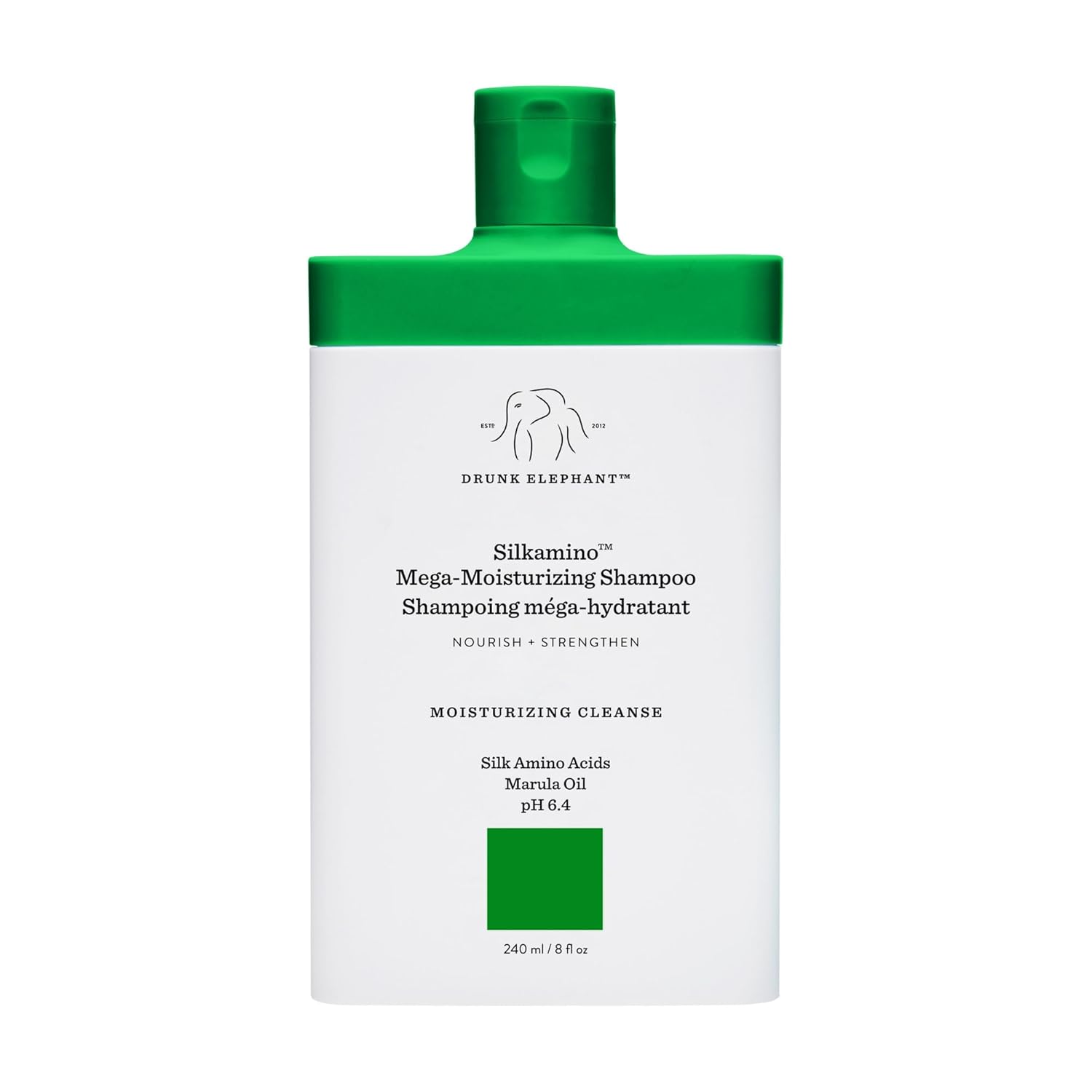 Drunk Elephant Silkamino Mega-Moisturizing Shampoo - 240 ml/8 fl oz - Silk Amino Acids - Clean Clinical - Sulfate-Free - Cruelty-Free - Dermatologist-Tested - Free of Essential Oils, Silicones, SLS