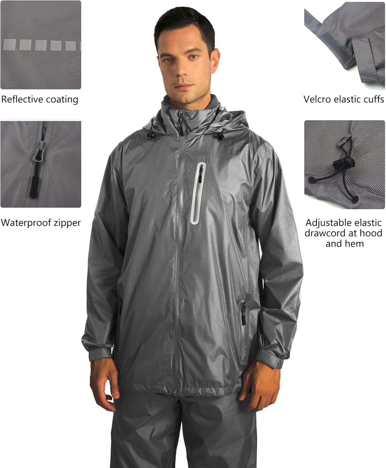 V VALANCH Equipo de Lluvia para Hombre Chaqueta y Pantalones Impermeables con Bolsillo Reflectante en el Pecho