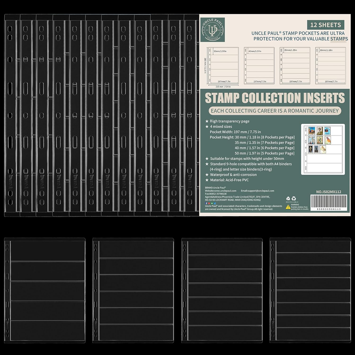 PROFESSIONAL SIZE KITS - 12 pages per pack in 4 sizes. Fits stamps with short side under 50 mm [1.96 inch]. Sizes: 197x30mm, 197x35mm, 197x40mm, 197x50mm. (refer to product images)