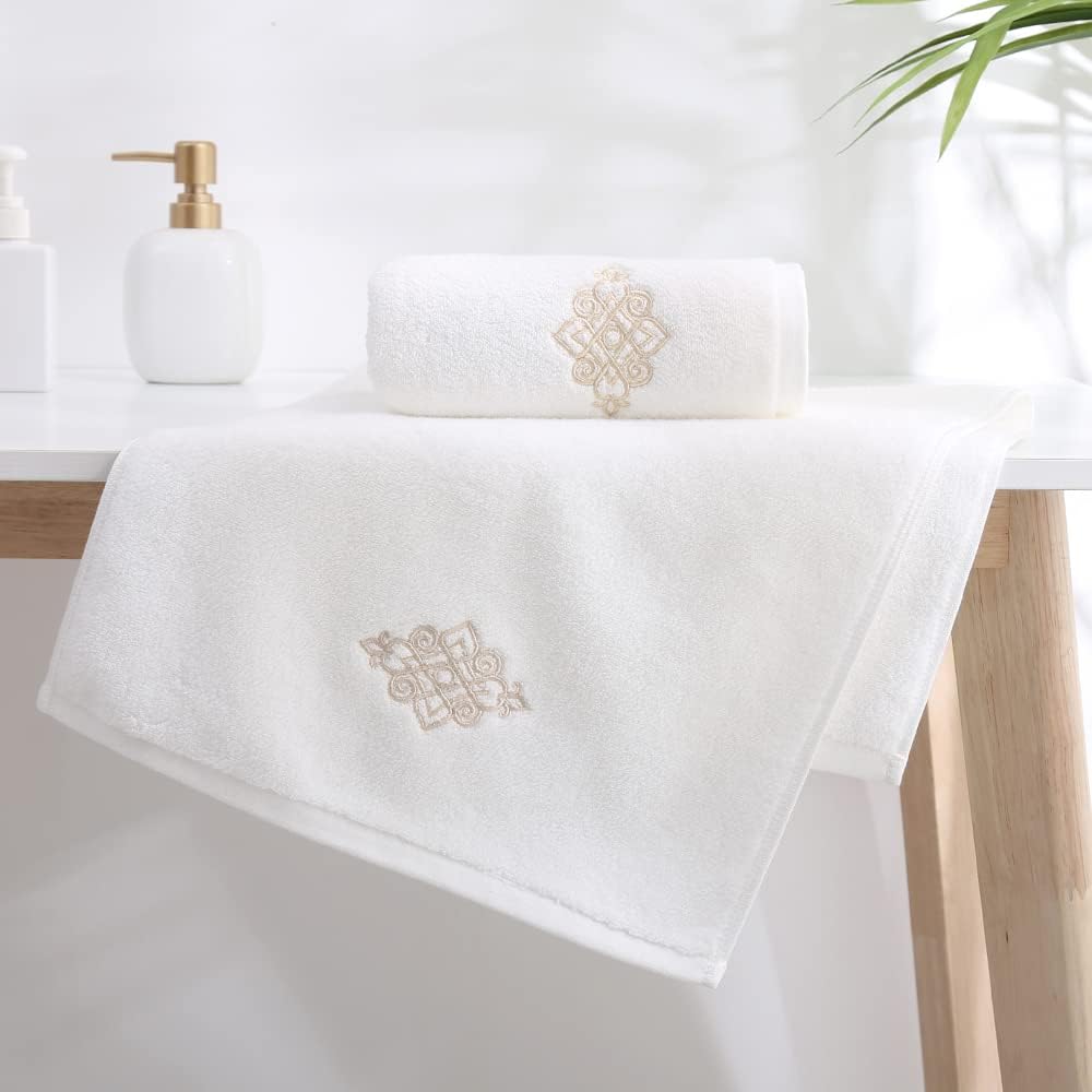 YiLUOMO Super Thick Luxury White Hand Towels Soft 100% Cotton Highly Absorbent Embroidered Decorative Hand Towel Set for Bathroom Hotel & Spa(13 x 29 Inch, 2 Pack)