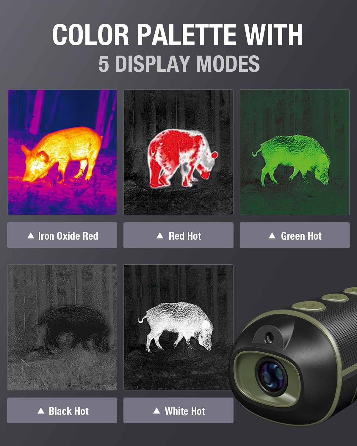 [5 Display Modes] Teslong night vision monocular comes with different color modes including White Hot, Black Hot, Red Hot, Green Hot, Iron Oxide Hot, making it versatile and suitable for various scenarios such as hunting, law enforcement, and search and rescue operations