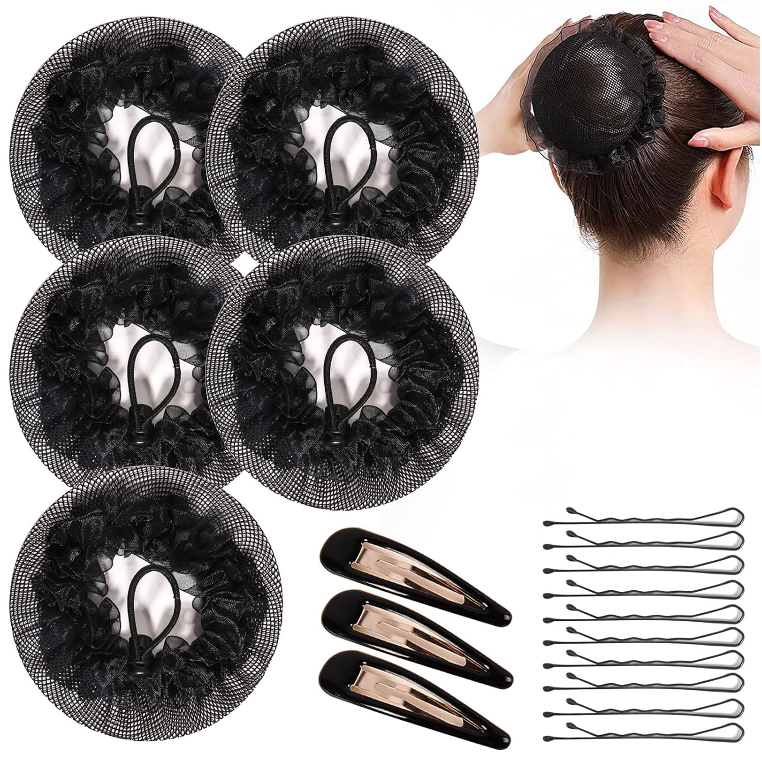 【Package Include】 Includes 5pcs high quality durable bun hairnets with lace,this way you'll always have a backup reusable bun hairnets; 3 teardrop-shaped barrettes and 10 U-shaped hair clips which can help you fix your hair better;