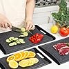 【ALL IN ONE SET】Our cutting boards of various sizes can improve your efficiency in the kitchen. Extra large size:17.0*11.8*0.4 inch; Large size:14.0*9.5*0.35 inch; Medium size:11.4*7.8*0.35 inch. Each size is designed for a type of food and can be cut separately. Perfect for multiple meals or all day use.