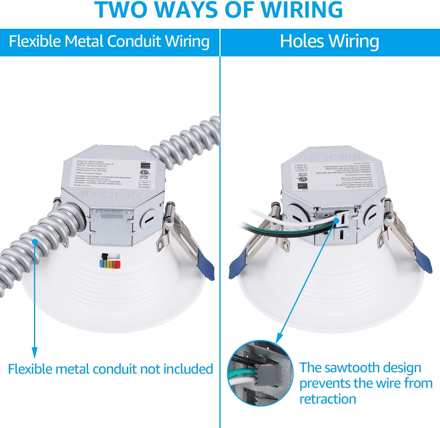 Innovation Makes Life Easier: TORCHSTAR has always been at the forefront of research and development. In order to simplify the installation steps of j-box recessed lights, we designed the integrated j-box, which is convenient for installation. At the same time, it effectively solves your subsequent maintenance and replacement difficulties, and reduces the safety hazards caused by cluttered wiring