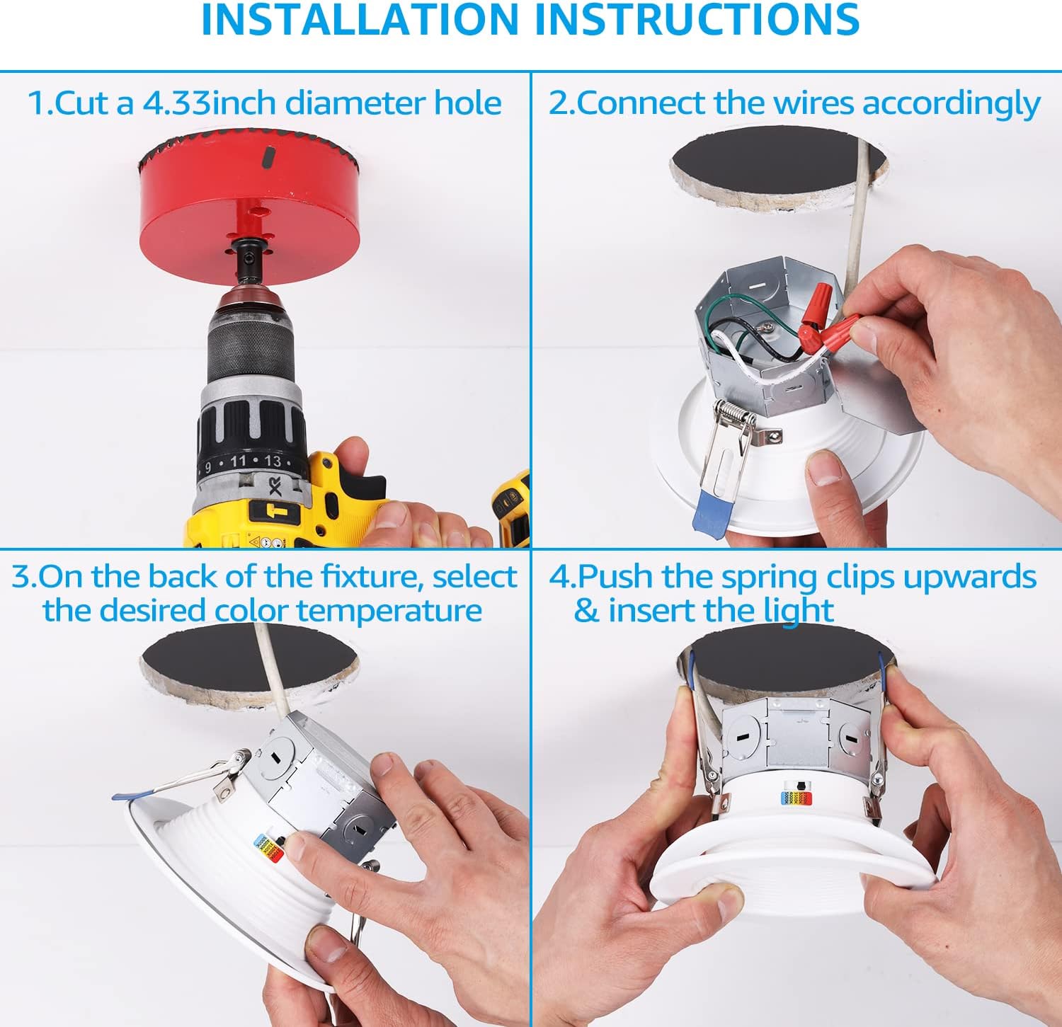 5CCT & CRI90 & 10%-100% Dimmable: High CRI90 display the true color of the objects and improve life-quality. Able to change the color temperature (2700K/3000K/3500K/4000K/5000K)from warm lighting all the way to cool lighting, this 5cct canless baffle lights is compatible with most dimmers to achieve smooth 100%-10% dimming