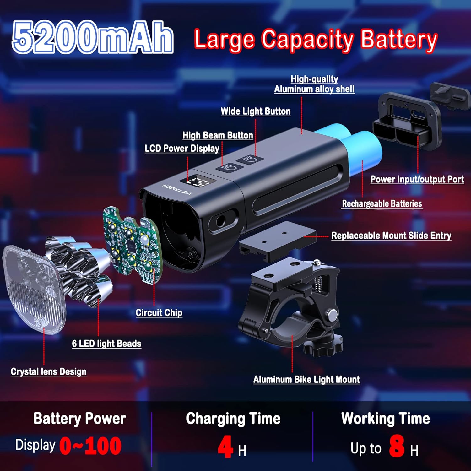 🚴🚴【Bike headlight with LED display】Victagen bike light, bike headlight with LED power display, let you know your remaining battery at any time, make sure you don't lose your light when night riding, make you more Safety.