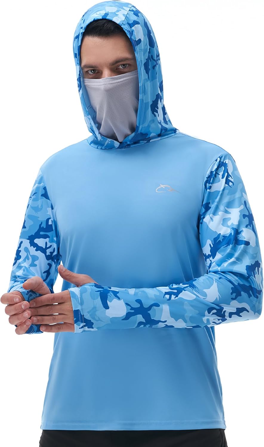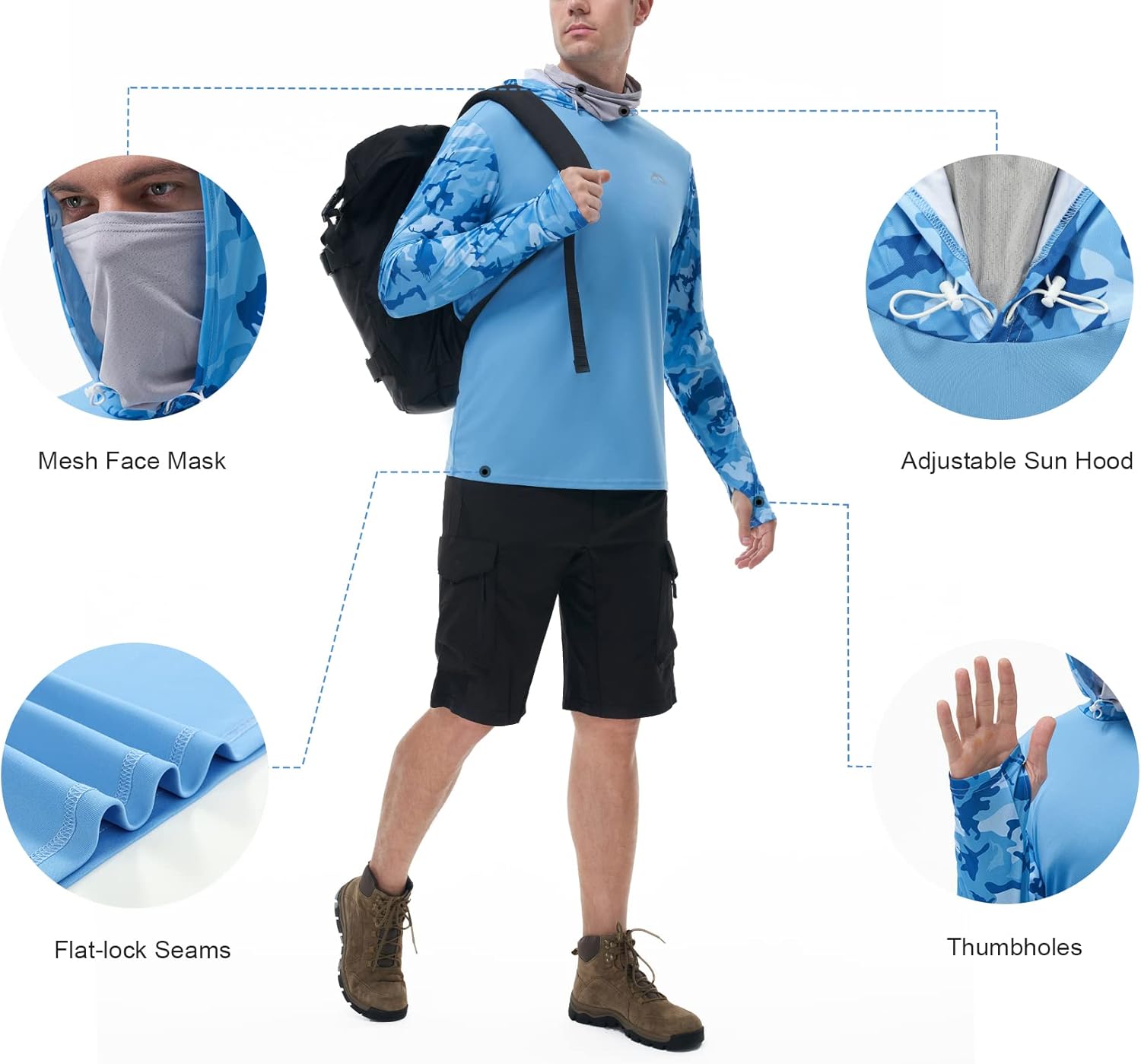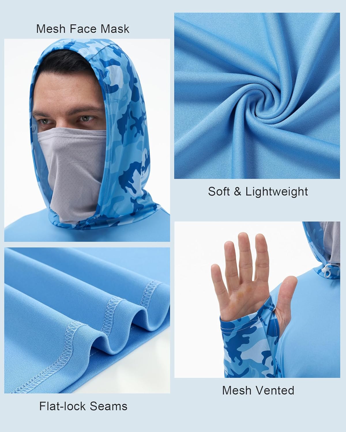 FISHEAL Men's Performance Fishing Hoodie Shirt - UPF 50+ UV Sun Protection Long Sleeve Shirts with Mesh Face Mask