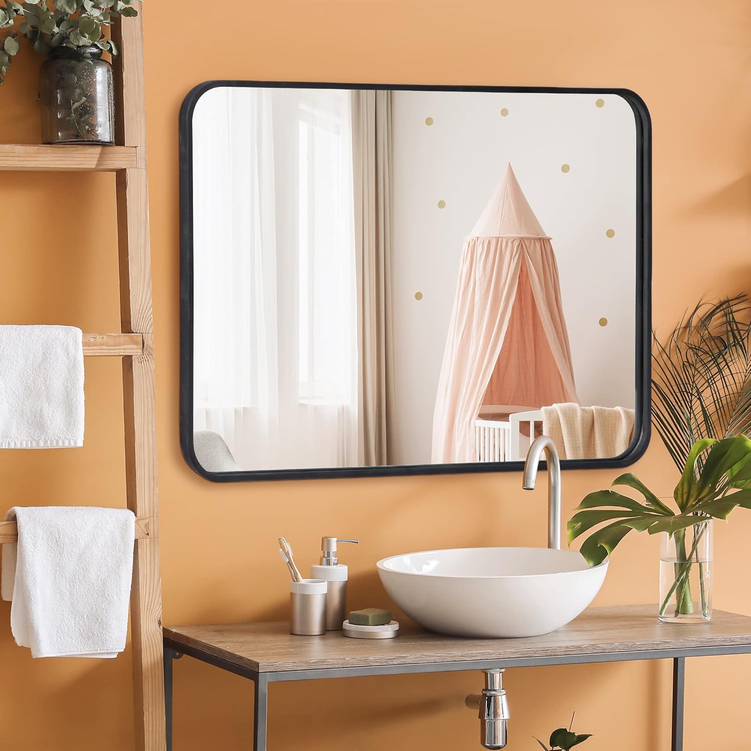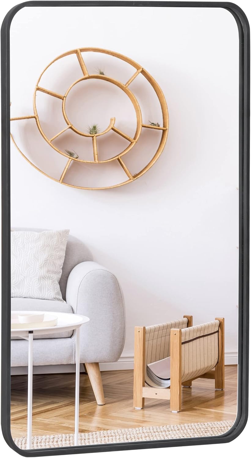 Smartxchoices 24 x 36 Inch Black Mirror Wall Mirror,Rectangular Metal Frame Vanity Mirror, Decorative Wall Mounted Home Decor Corner Hangs (Horizontal/Vertical) for Living Room Entryway Bathrooms