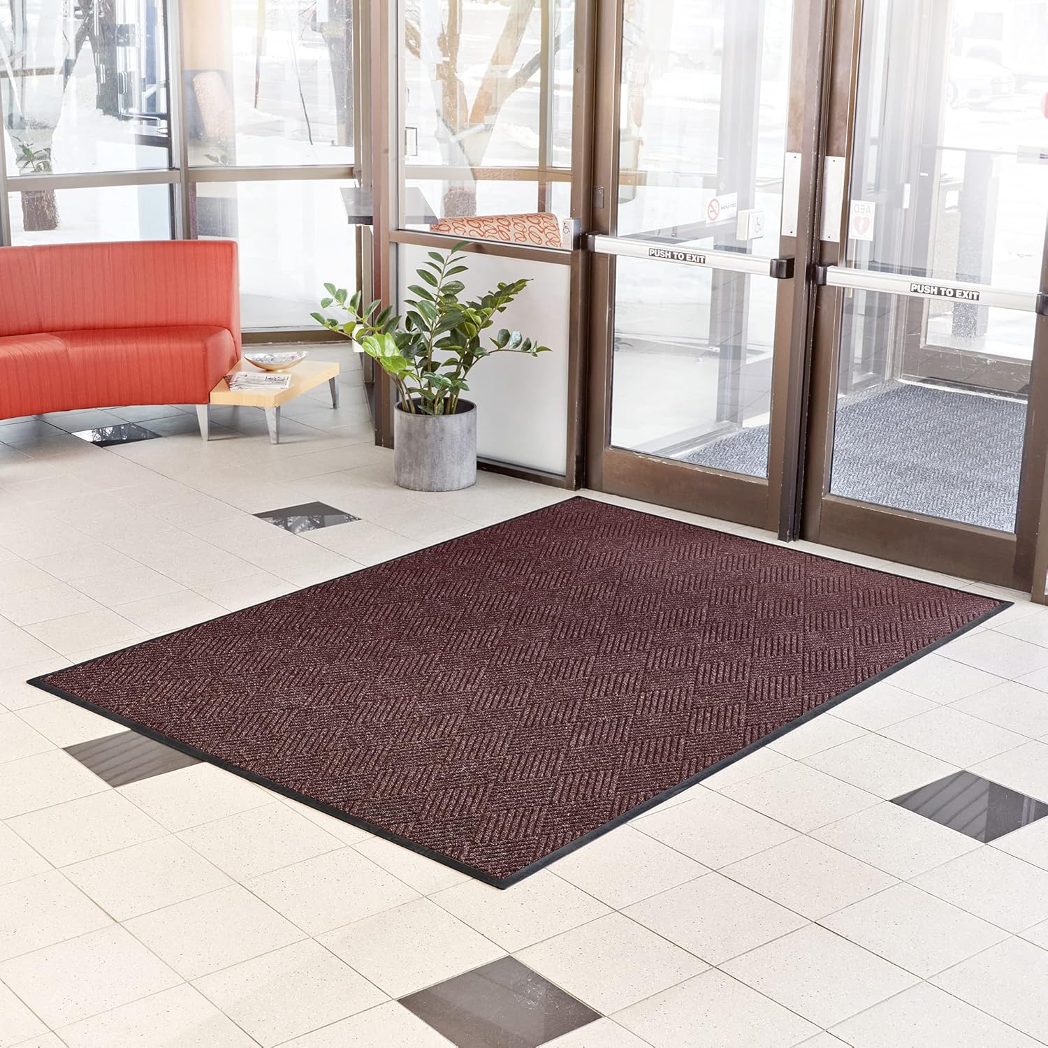 Consolidated Plastics Aquasorb Premiere Entrance Floor Mat with Non-Slip Rubber Backing, Absorbs Water, 30 Oz Heavy Duty Carpet Rug Commercial Grade (45" x 101", Maroon)