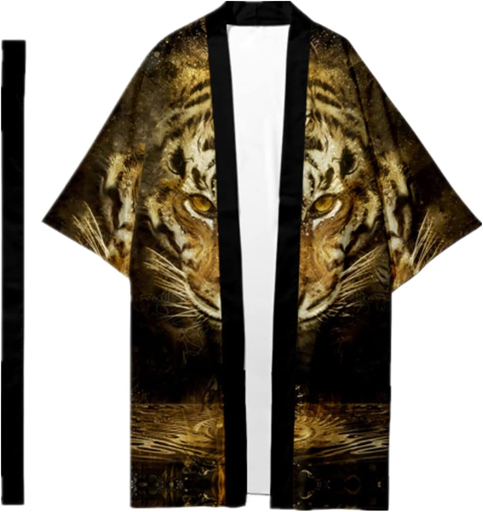 HZCX FASHION Mens Kimono Robe With Belt Printed Lightweight Open Front Samurai