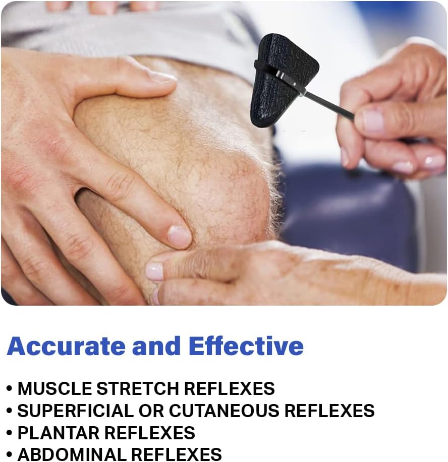 FOR BASIC REFLEX ASSESSMENT: Intended to elicit patellar reflexes and myotatic reflexes with triangular rubber head.