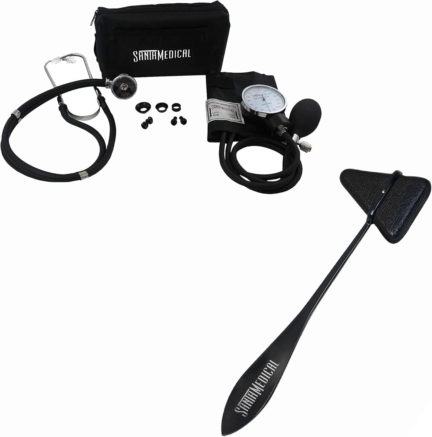Santamedical Adult Deluxe Aneroid Sphygmomanometer with Stethoscope, Cuff and Carrying case & Santamedical Taylor Percussion Hammer