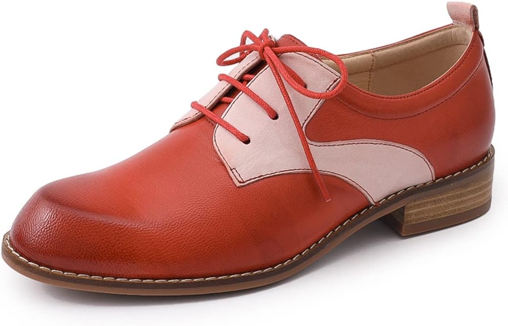 Mona flying Women's Handmade Two Tone Dress Oxfords Saddle Derby Comfy Lace up Leather Shoes for Ladies