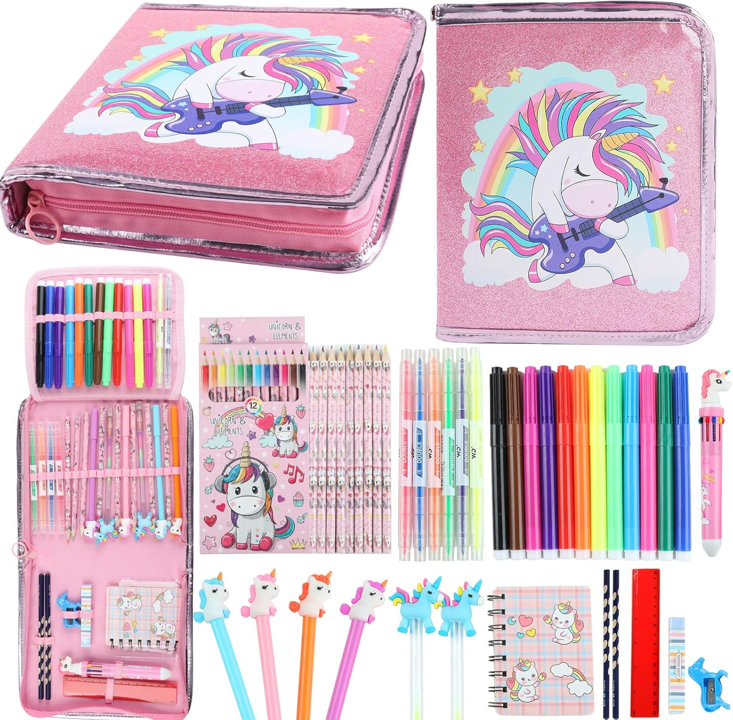 【Lindo Estuche de Unicornio】Todos los Suministros de Arte Están Organizados en un Estuche de Unicornio Premium, Lindo y Chispeante, El Estuche de Unicornio Es Fácil de Llevar y Usar en Escuela, Oficina, Viaje o En Casa. Caja de Regalo Ideal Para Niños, Niñas, Edades 4-12.