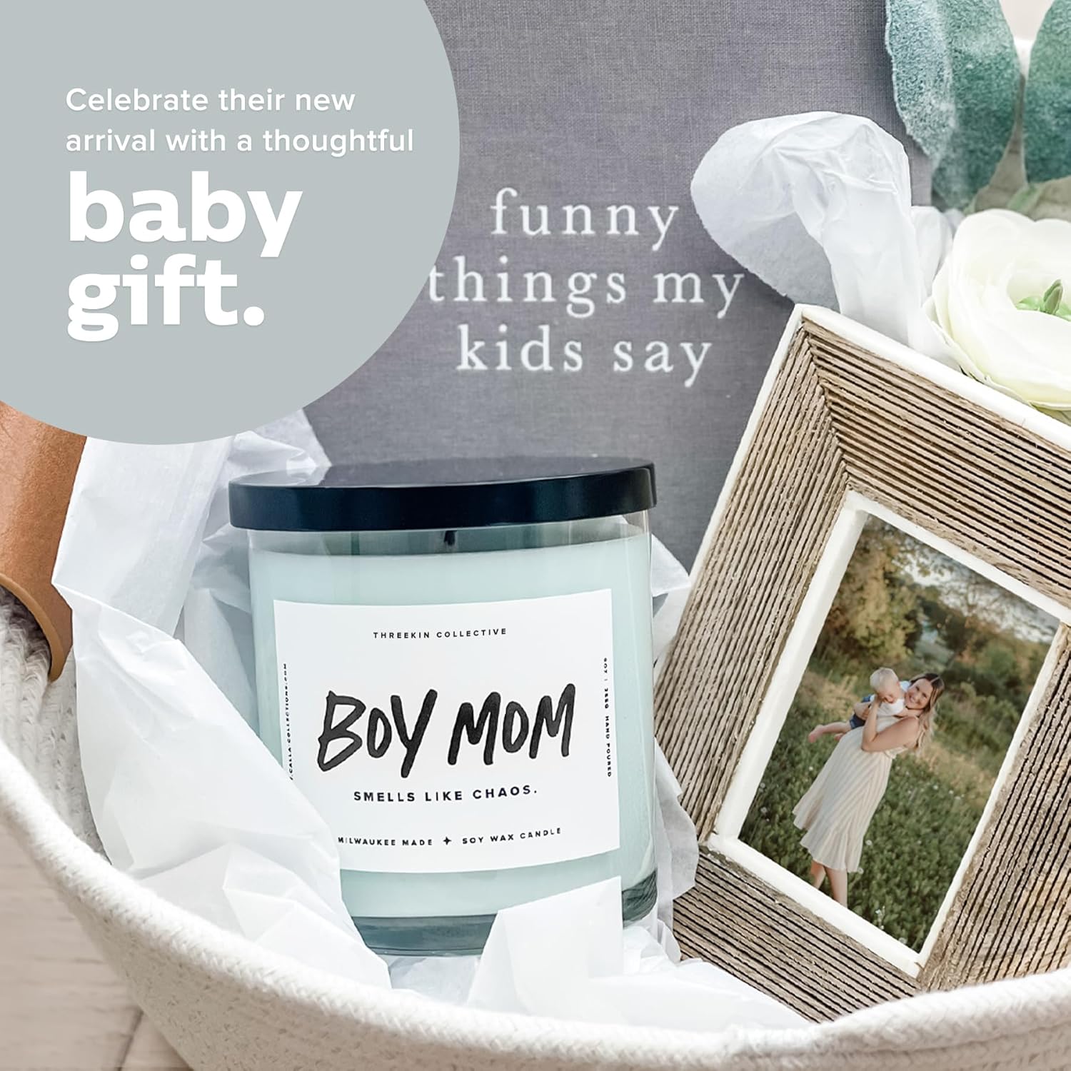 ThreeKin Scented Candles for Boy Mom, Natural Soy Wax Candles for Home, Relaxing Aromatherapy for Moms, Driftwood Essential Oils with a Hint of Chaos, Long Lasting Candle Burns for 75 Hours