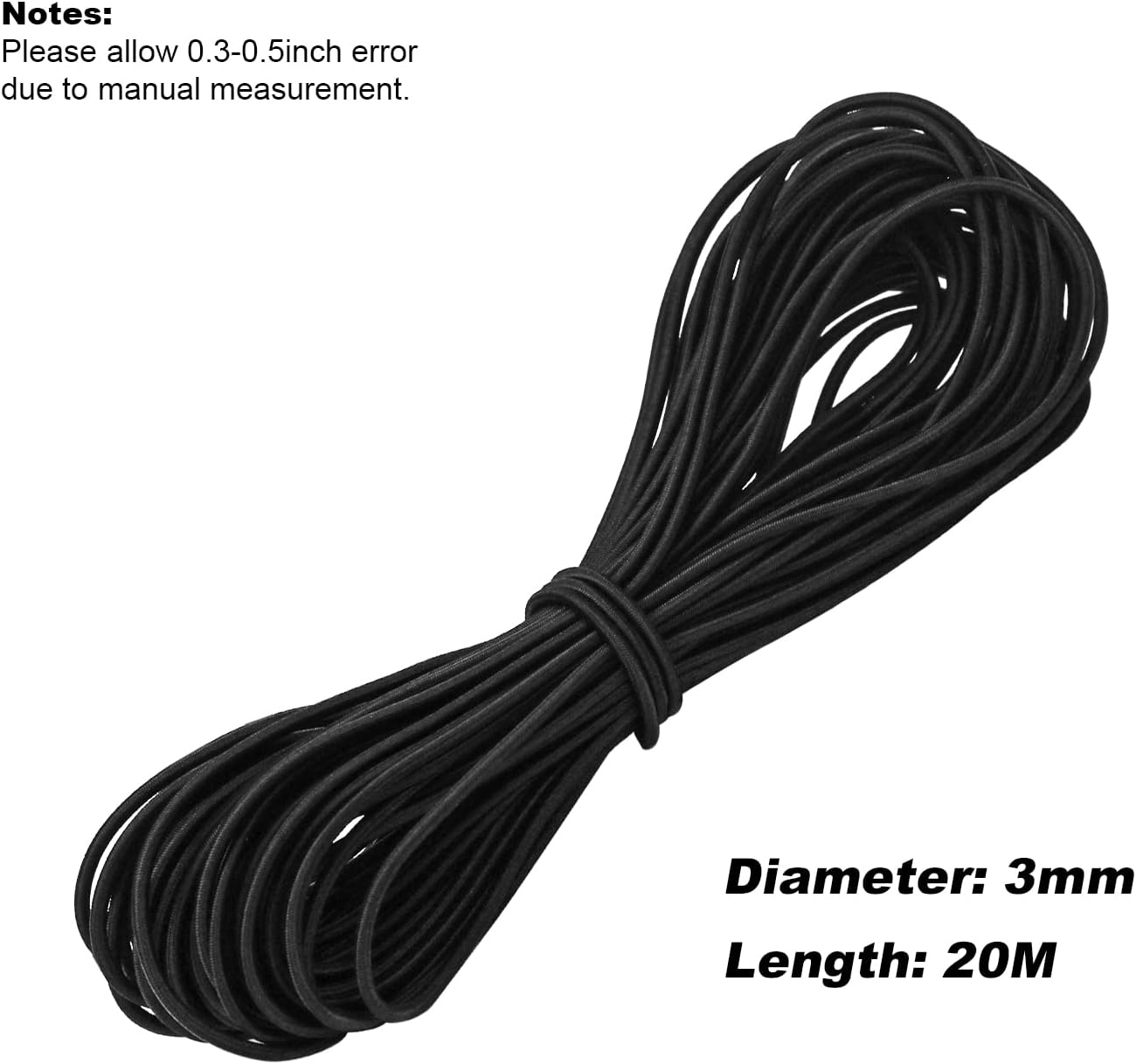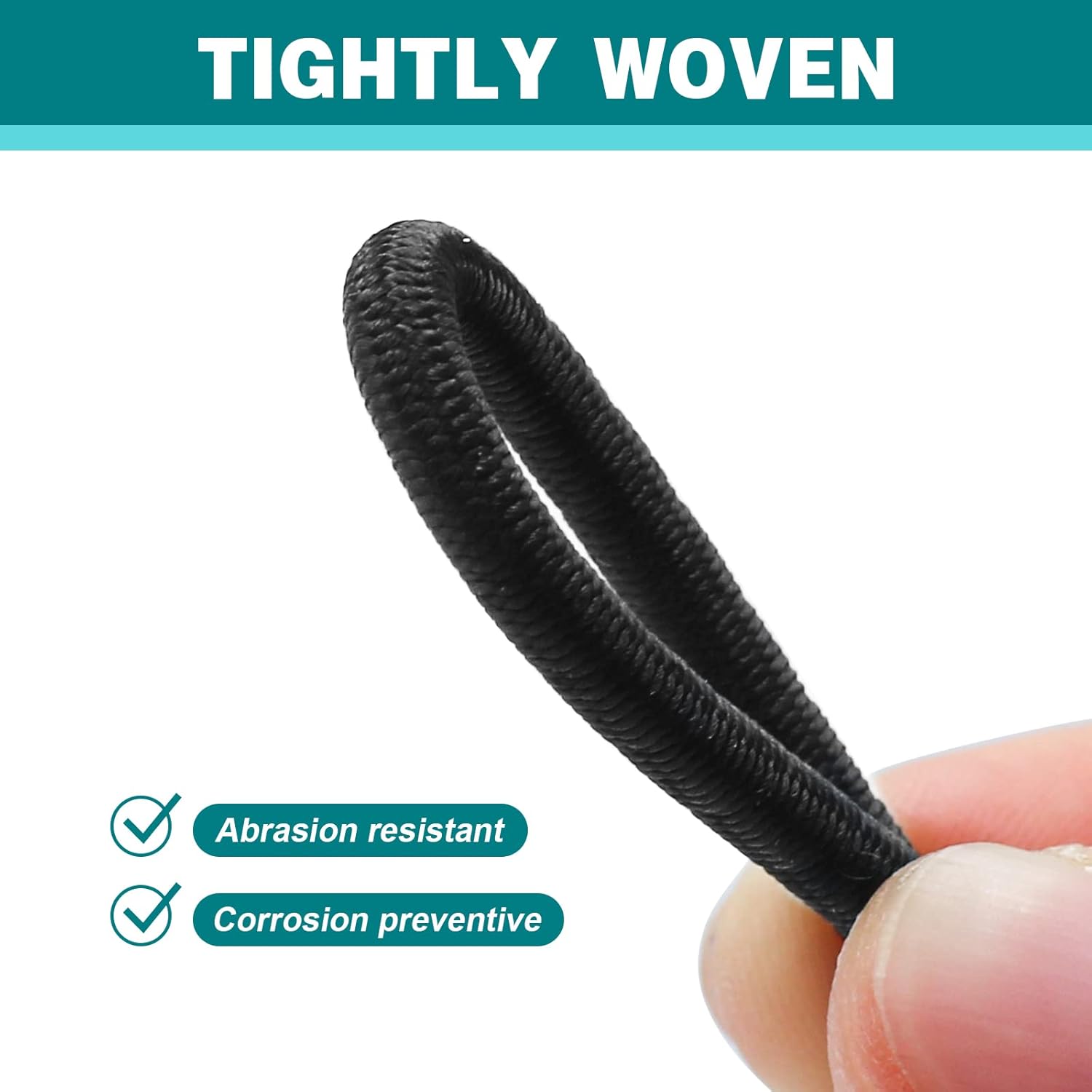 1/8" Bungee Shock Cords with Hooks,65 Feet Elastic Nylon Cords Kayak Stretch String Rope for Bikes,Tie Downs,Boating,Camping,Sunshades,Fitness and Outdoor Enthusiasts (1/8 inch x 65 feet, Black)