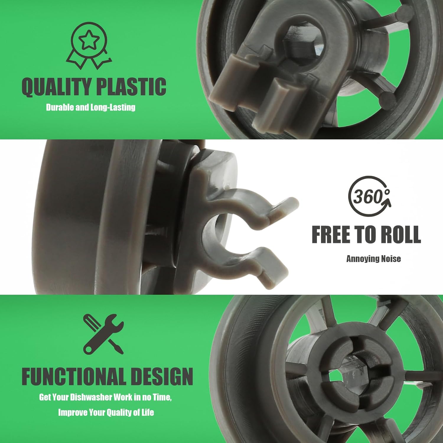 [QUALITY MATERIAL]: The 4581DD3003B dishwasher rack wheels replacement for LG are made of high-grade and heat-resistance material that meets OEM standard. The edge and surface are processed smoothly. All of these ensure the long-lasting and effective performance