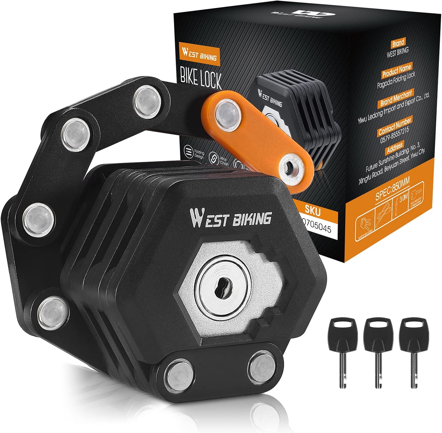 【WITH 3 KEYS】Specially designed just for your convenience! You can take one of the keys for your daily life while leave the other at home in case you lose it. Each link of the bike lock is made of strong alloy steel and connected by a special riveting process, which can folds very smoothly and quickly. Whether it is a daily commute or a long ride, this heavy duty anti theft bike locks can work excellently